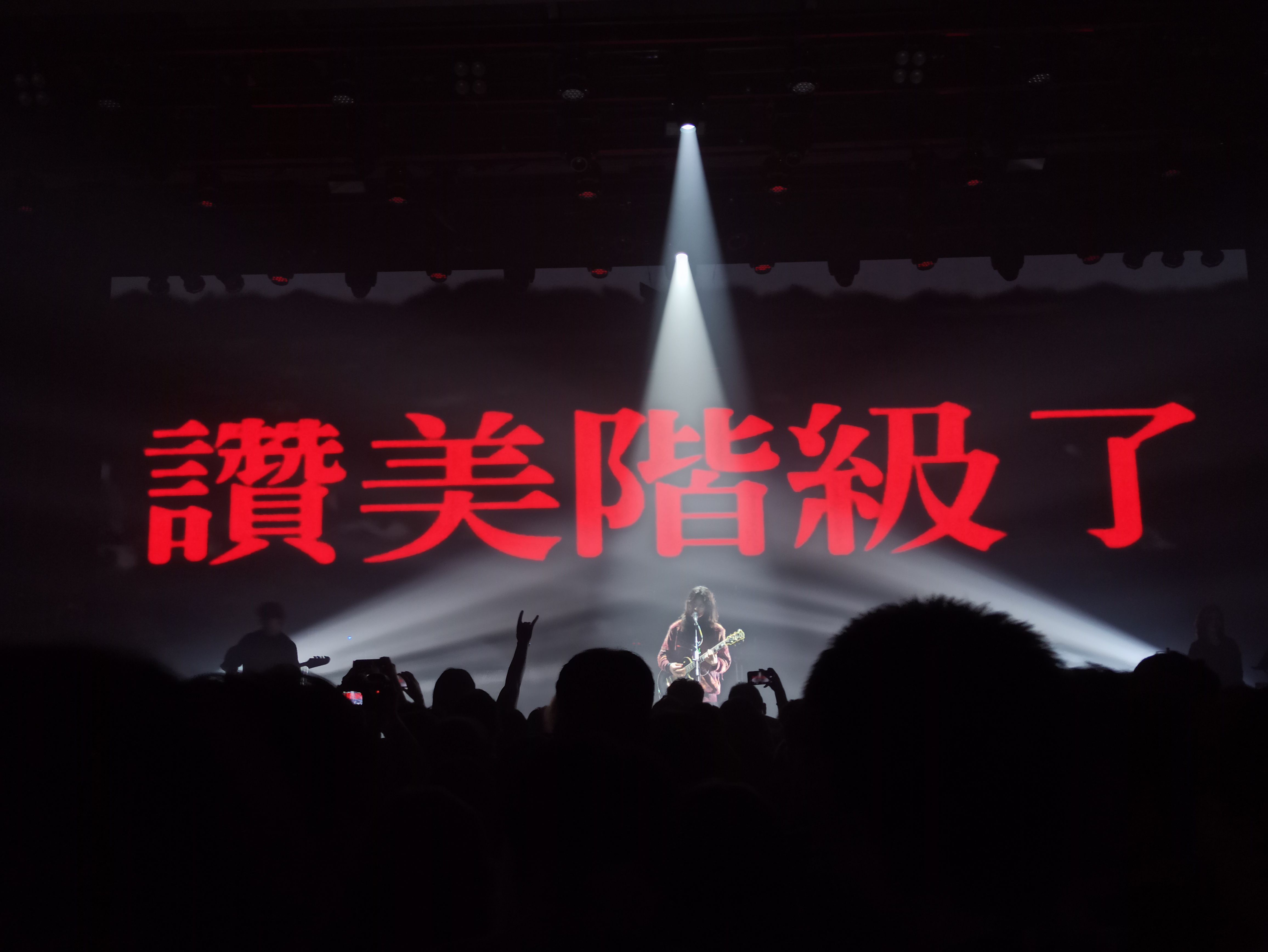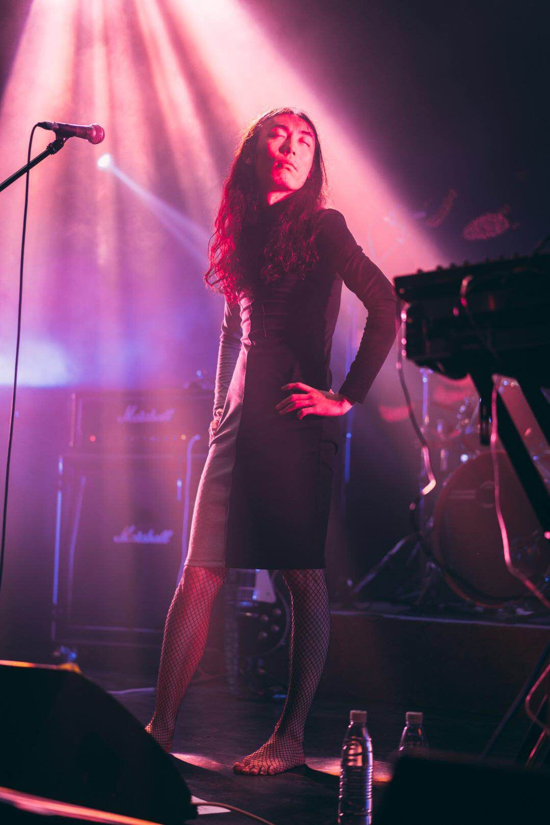 时隔三年多,再看梅卡德尔,又是一番新体验。19年还是在欧拉看得梅卡,那场印象尤其深刻,因为赵泰身着一身女装长裙(图一)。今天,听摇滚乐的人多了,听梅卡德尔的人也多了,与摇滚乐相关的都在壮大,场地、乐队、灯光……。梅卡德尔更烈了,扑面而来、不可抵挡的烈。
