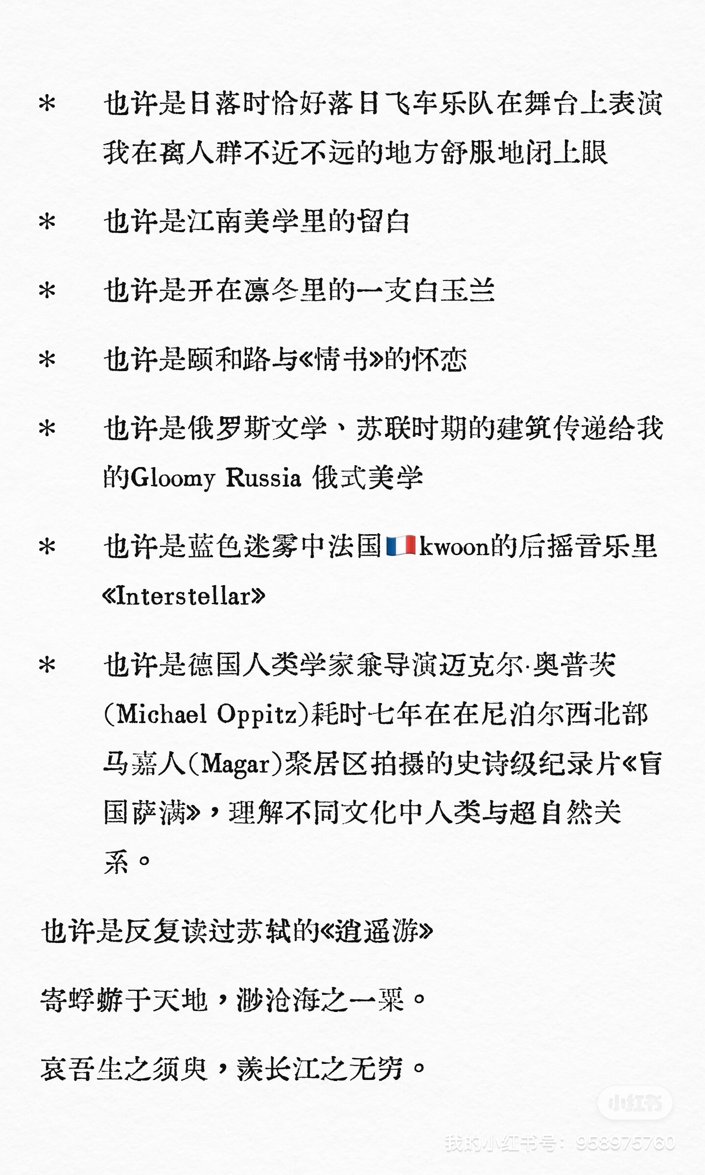 6.在精神枯竭之际总能发觉未曾听过的、非常珍贵的音乐,每天、每天。