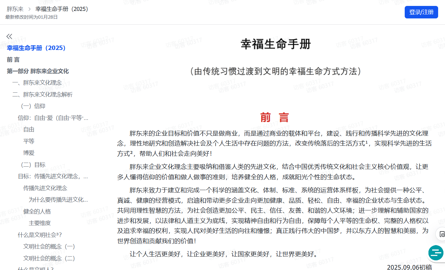 首先网站首页就完全没有常规企业官网的风格,非常简单随意;其次内容发布系统直接用的飞书,这可太聪明了了,编辑、审核、发布都变得非常轻松,比起自建的或者WordPress之类都要好很多;《幸福生命手册》不但是胖东来内部从上到下信奉并践行的行为指南,也对大众发出的倡议或者说人生建议,内容还是挺丰富全面的,值得学习。
