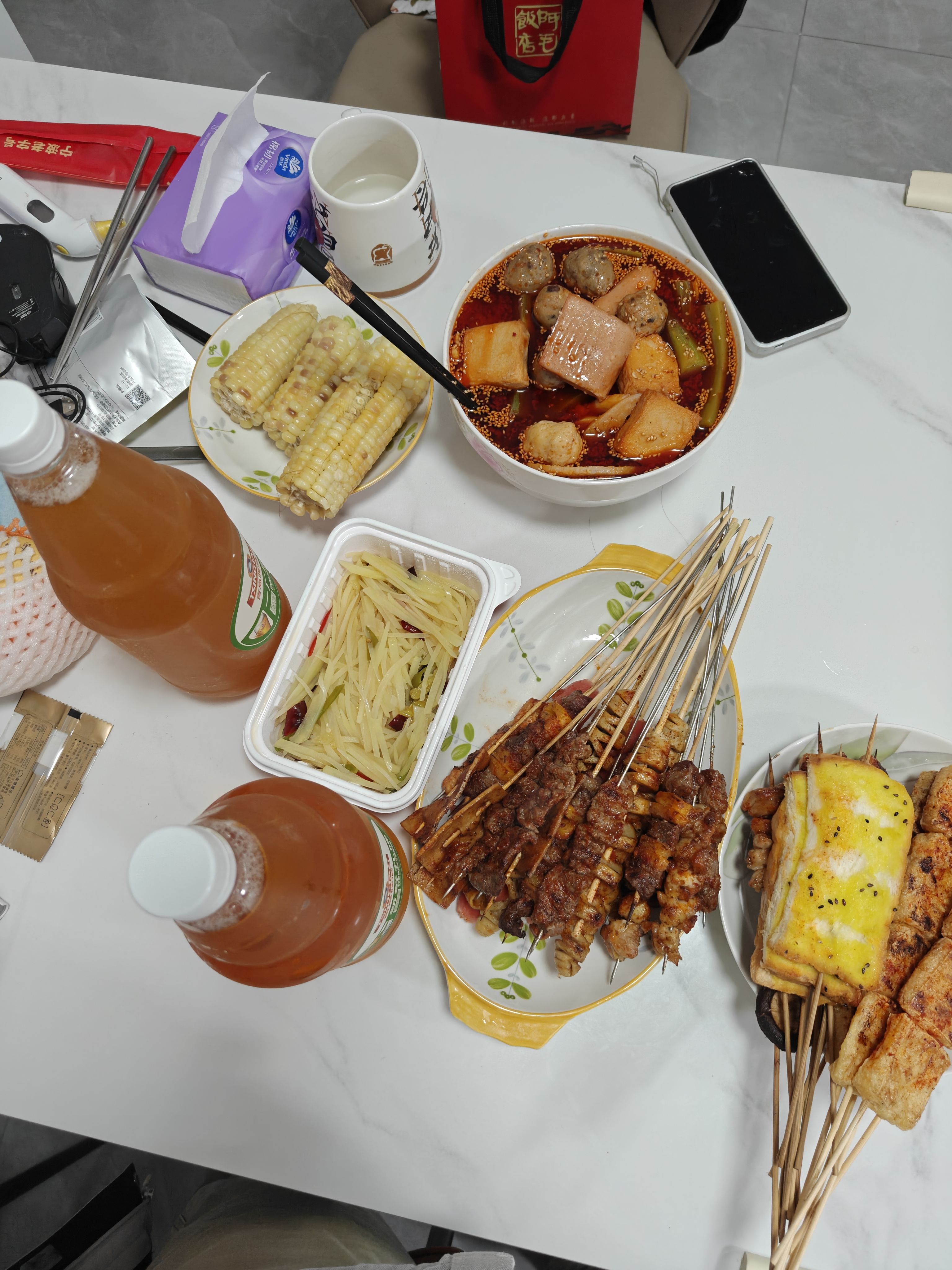 带着不同朋友送的酒和菜