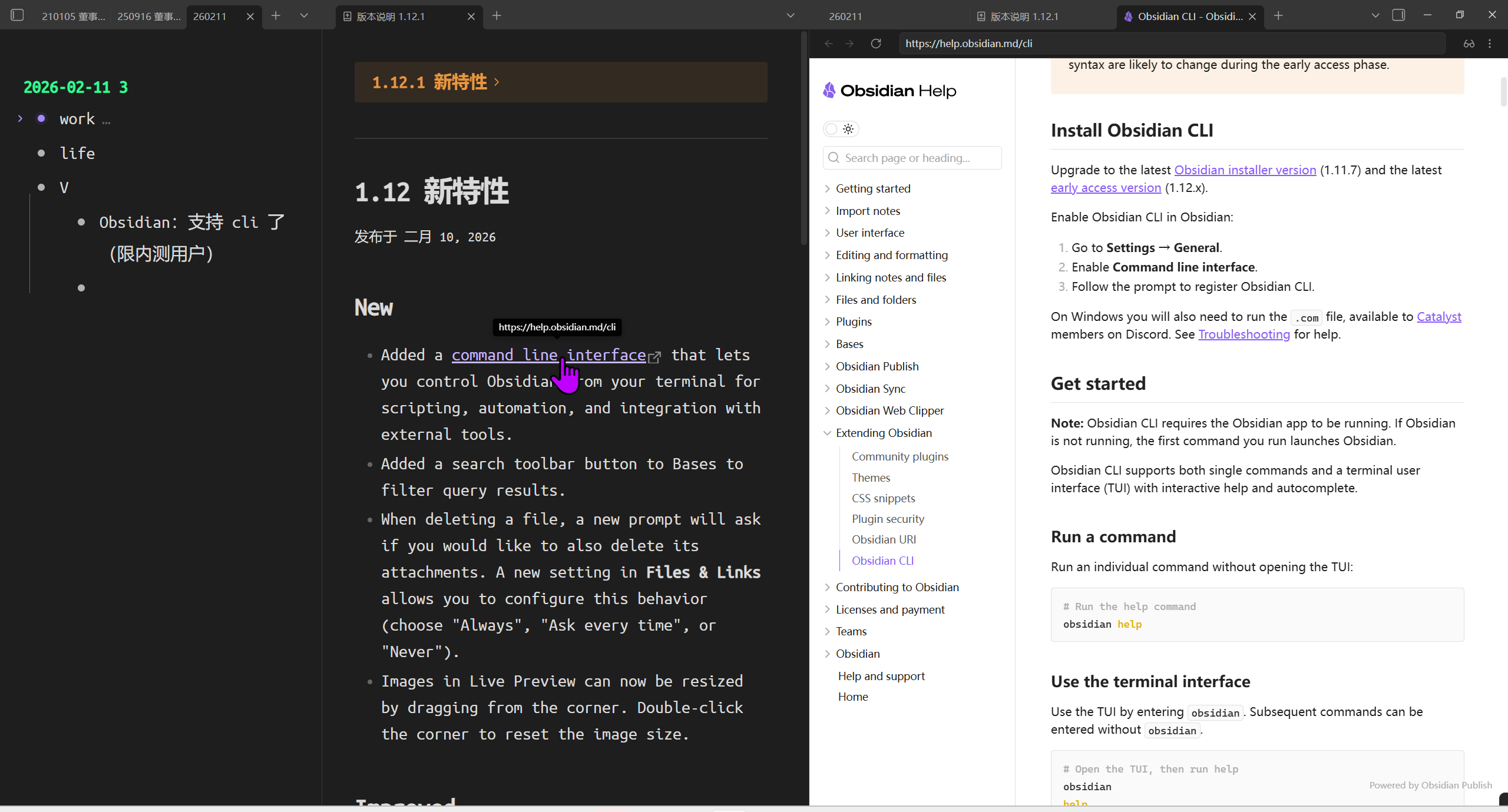 【Obsidian CLI ⚡发布】早期因硬件落后才CLI,后来要人性化,进化GUI。现在,机器超越人类,CLI又成了先进方式,连 #Obsidian 都发布CLI了😄 试了一下,挺好的……没有更多评价,因为这本来就是给AI和其他CLI提供的。
