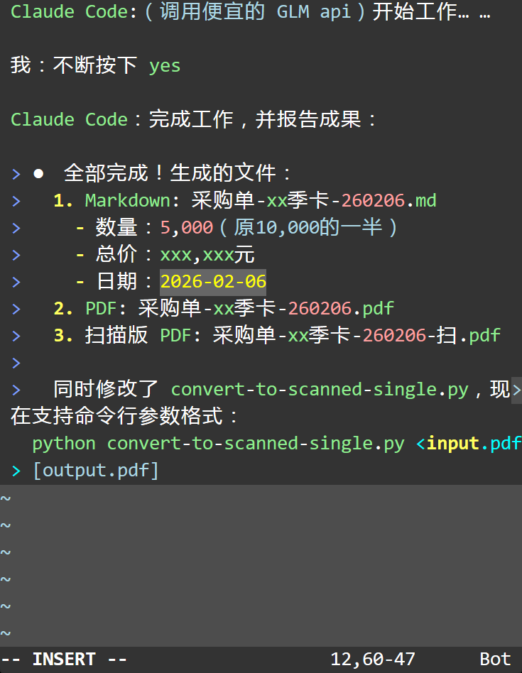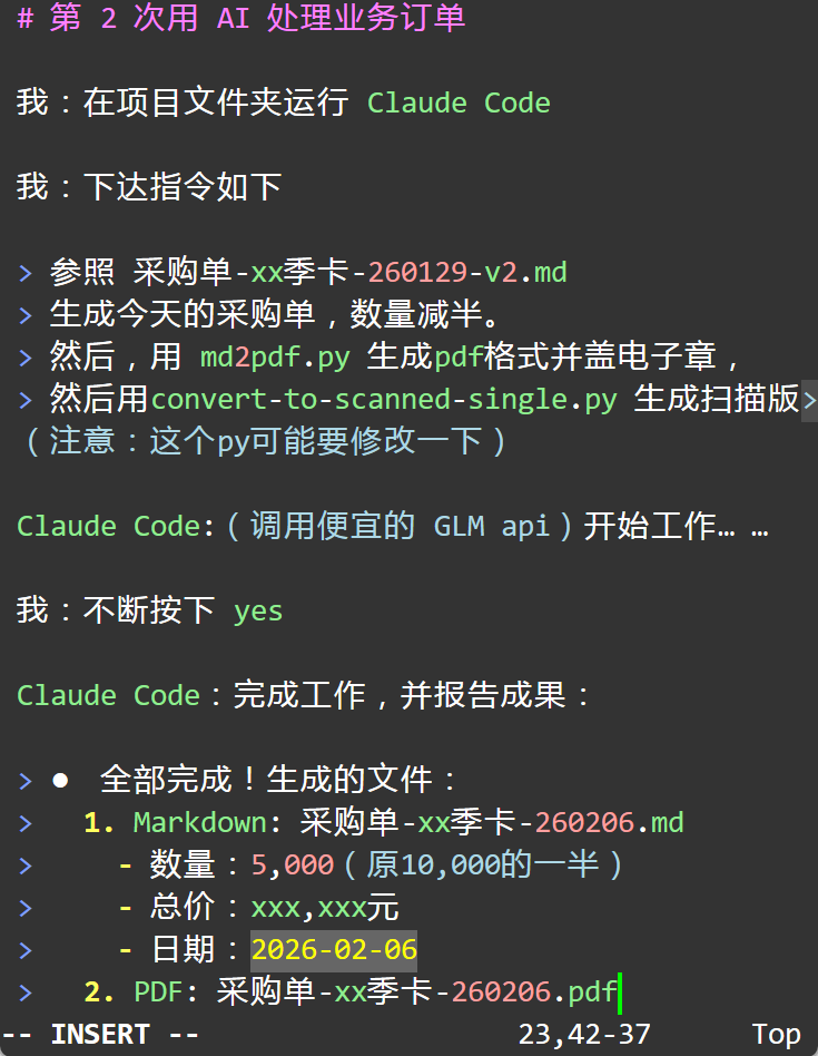 ps. 第1版AI流程,是通过人机交互,AI为它自己创建了 md转pdf、加盖公章、转扫描版的这几个python脚本。