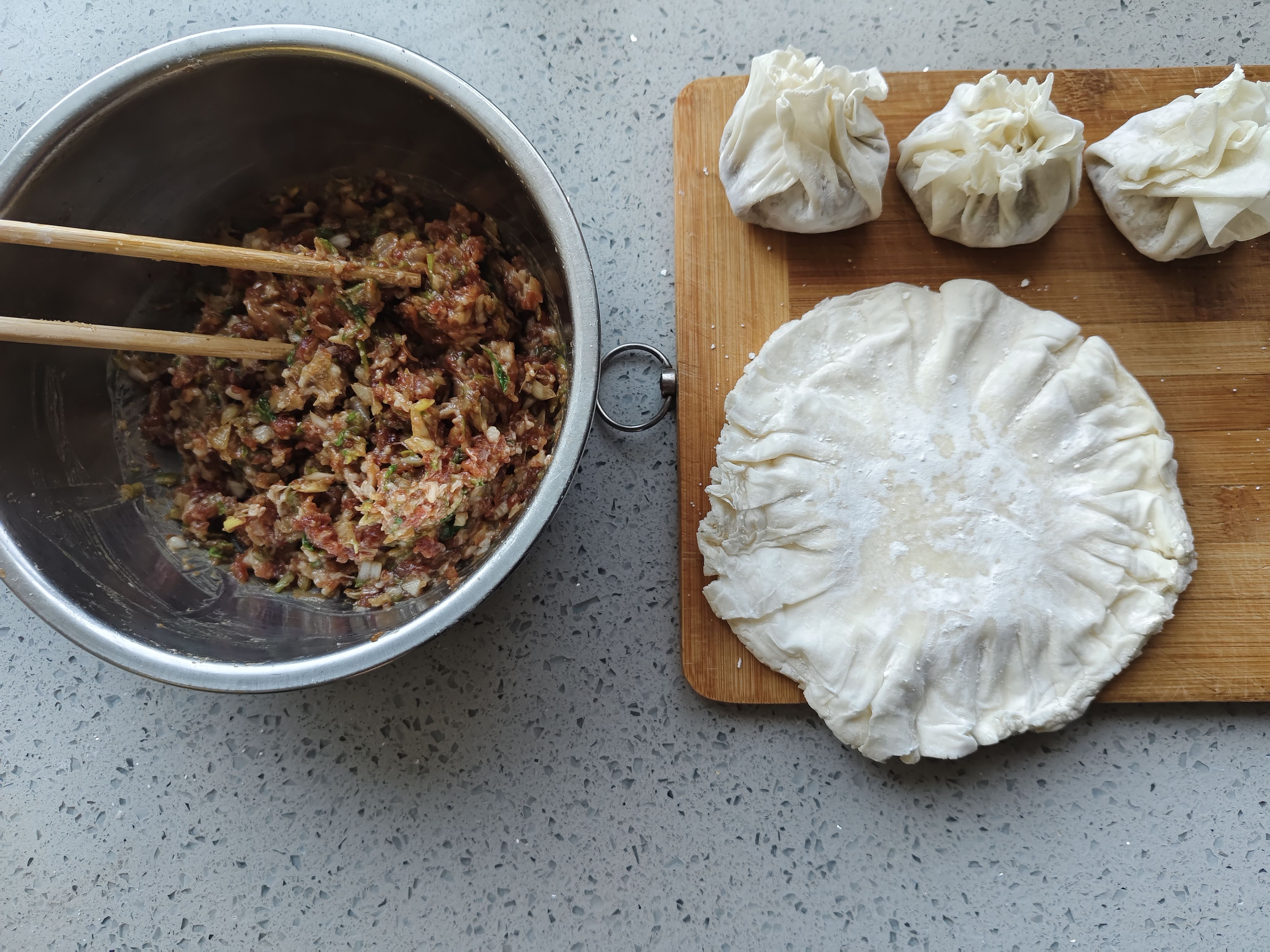 纯手工猪肉大葱烧麦😌😌😌