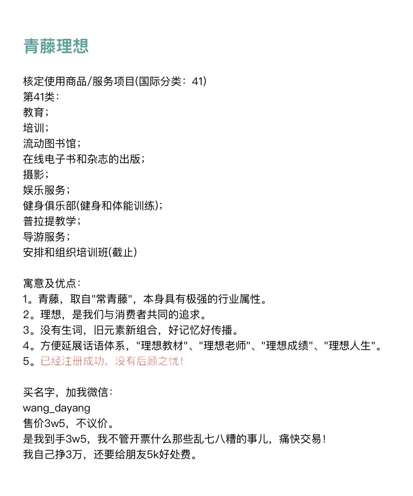 前一阵起了一个特别好的品牌名,叫“青藤理想”,教培行业的。