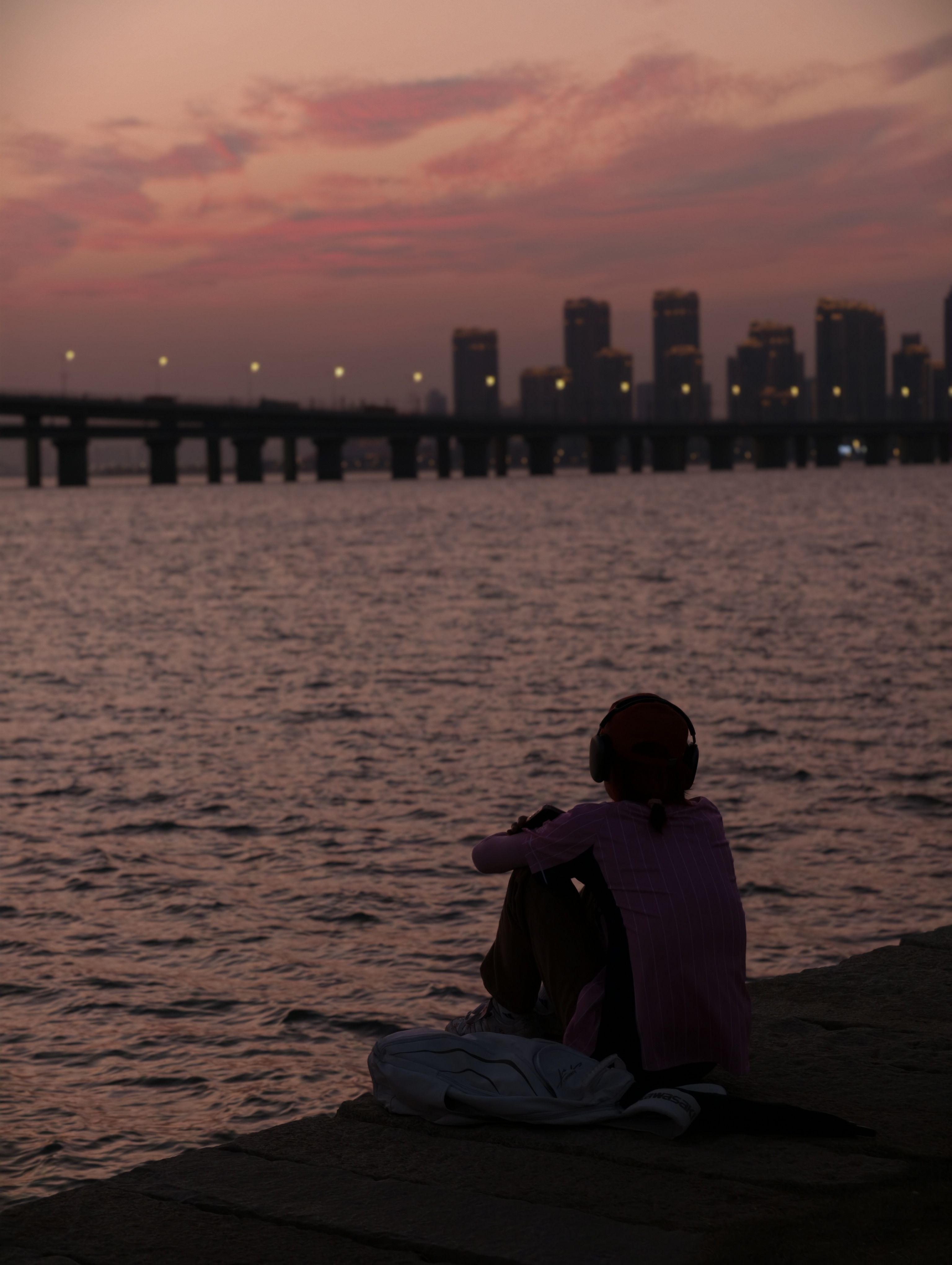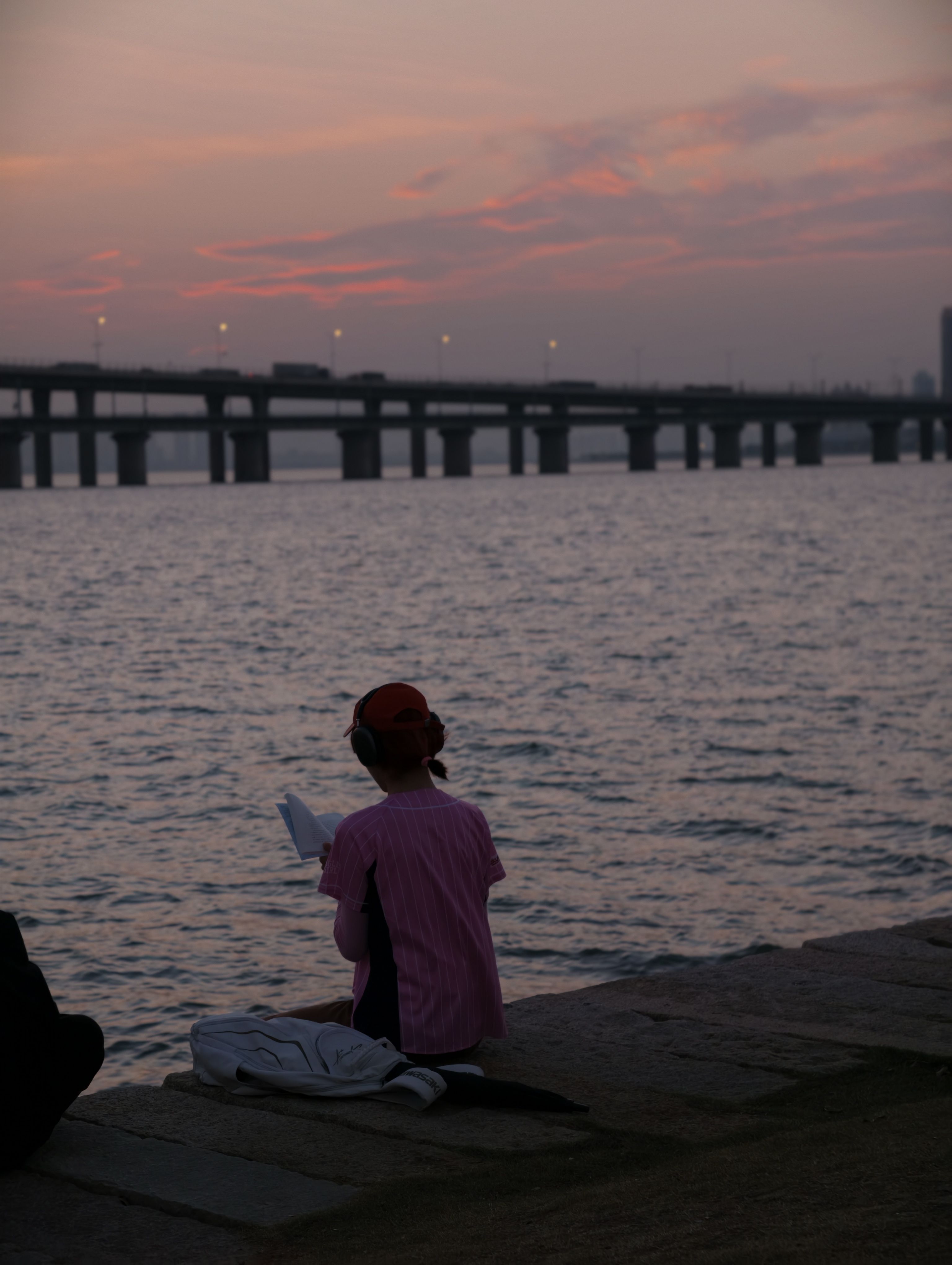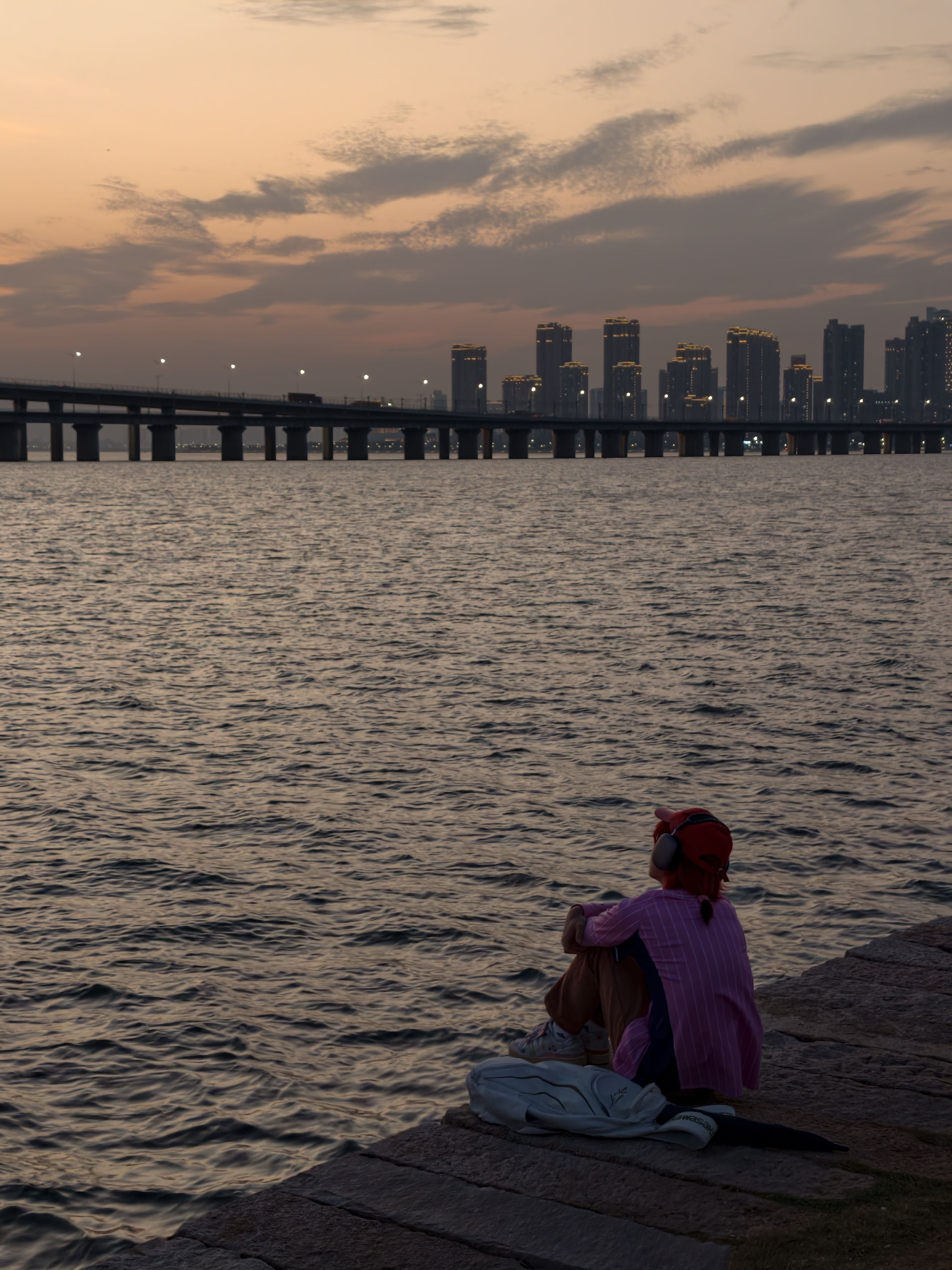 今天是跑步赶去的 到达的时候都快落尽了 幸运的是 我碰到了比日落更浪漫的晚霞 戴上耳机自带bgm去享受这个场景 我突然get到了“我可以原谅这个世界一分钟”的感觉🥹