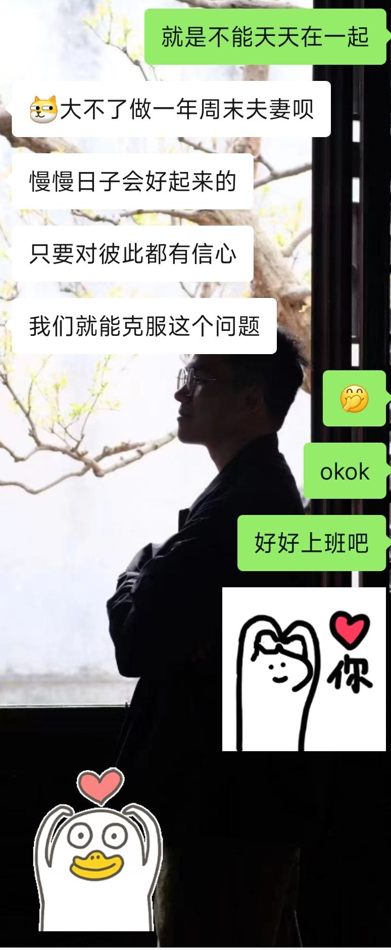 但老天爷还是安排了我们认识,在一起的这几个月,我们互相聊对方的感情经历、聊工作、聊家里人小八卦、聊成长……好像不管是从元宵节那天出奇的加到微信开始还是正式在一起的三月份,这一切都有布局似的,我们在这个过程中相处得越来越好。