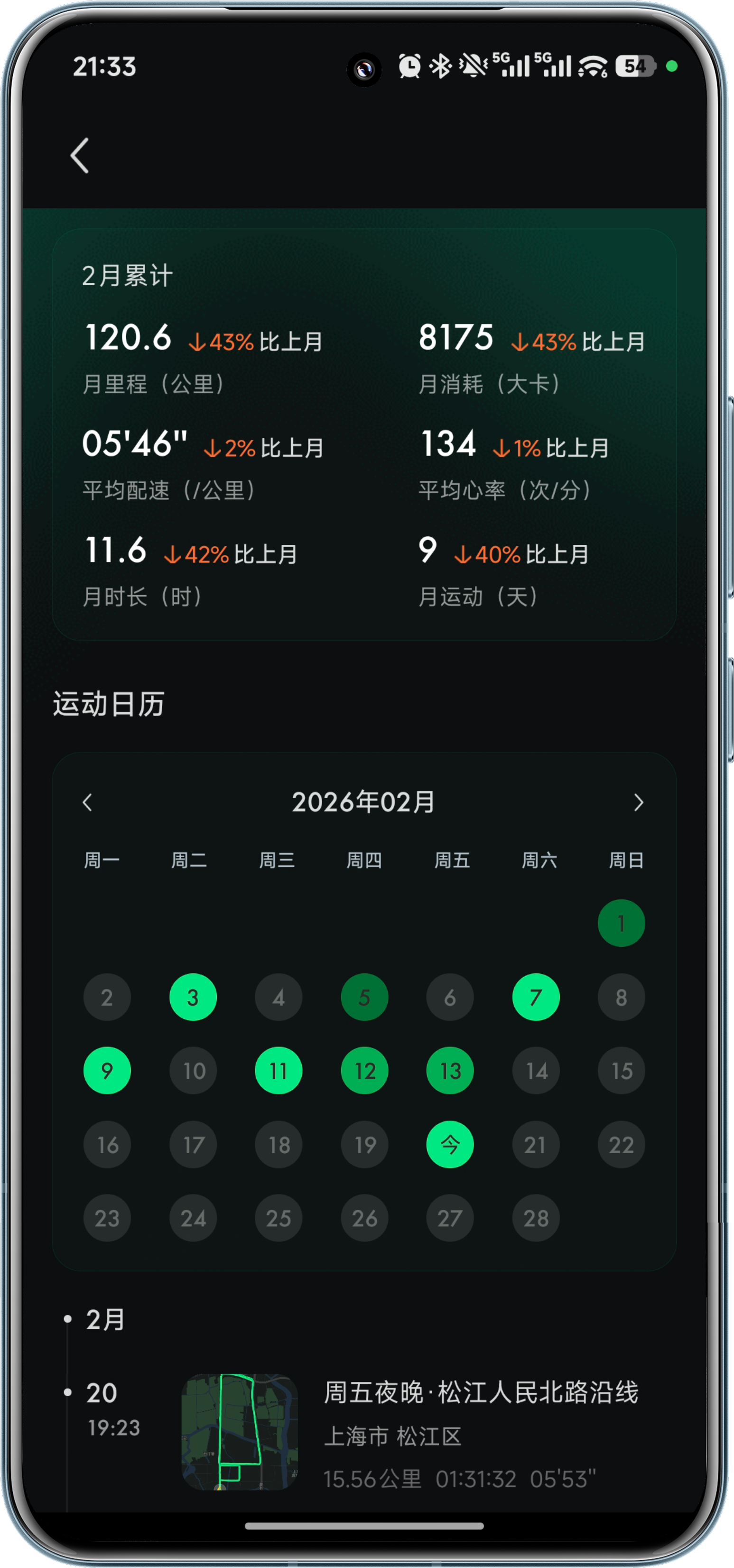 4️⃣ 在完成今天的15km之后,本月跑量达到120km,距离200km还差80km,大约再跑5次,也就是跑五休二的频次
