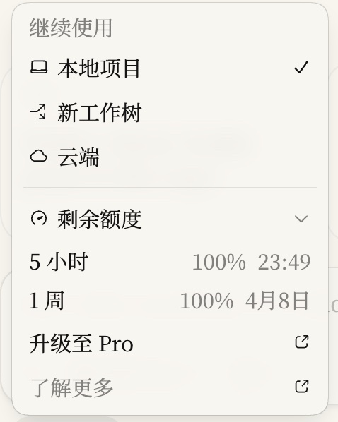 今天下午喜闻codex重置额度到100%,高兴得很。打开一看,发现周限确实恢复了100%,重置日期从4月3日更新到了4月8日。