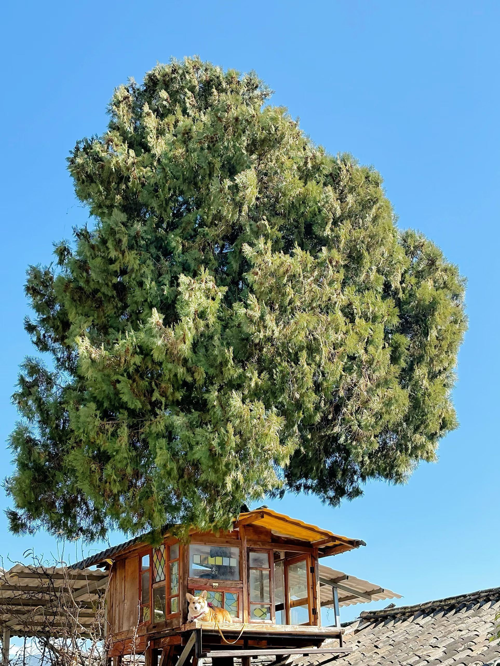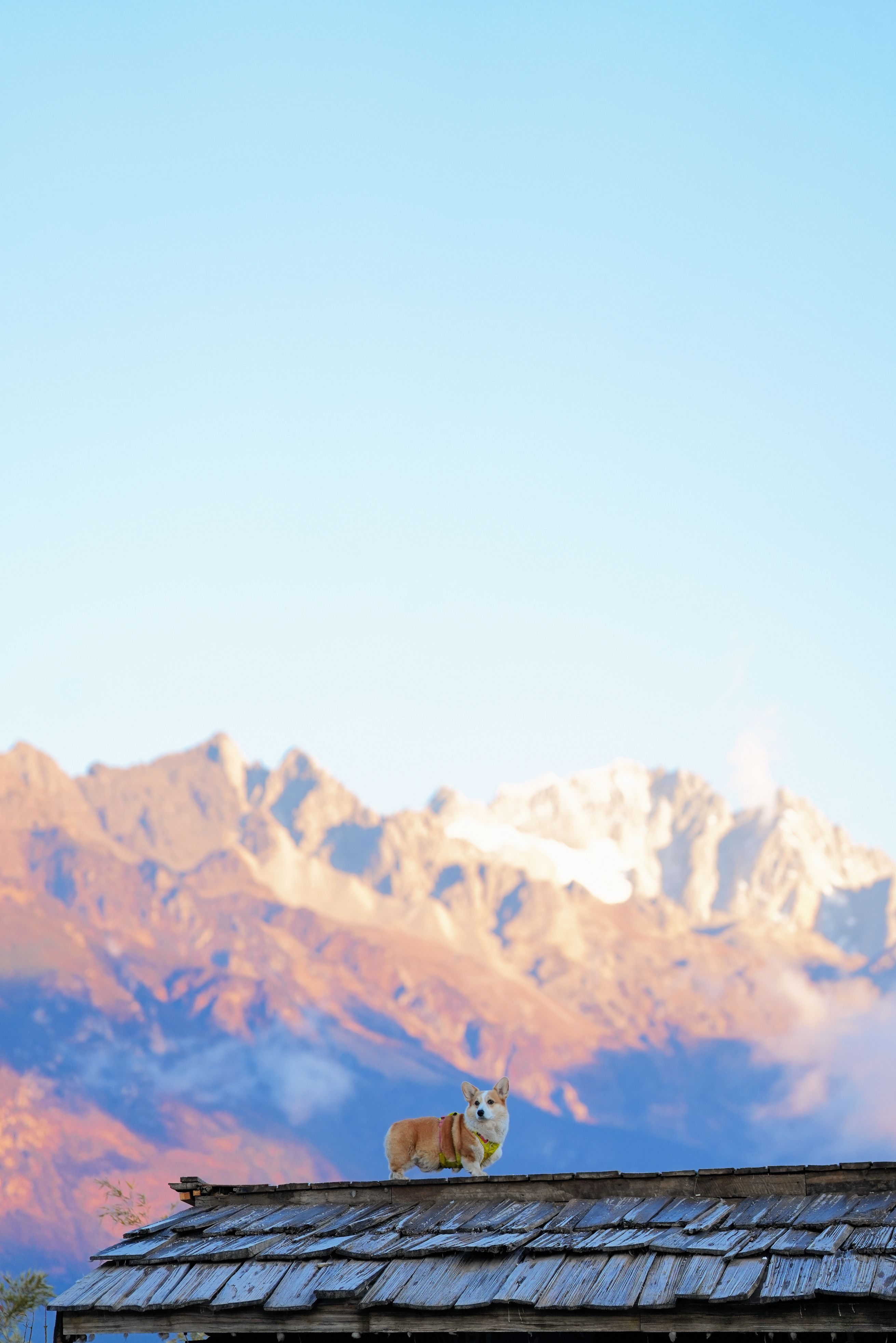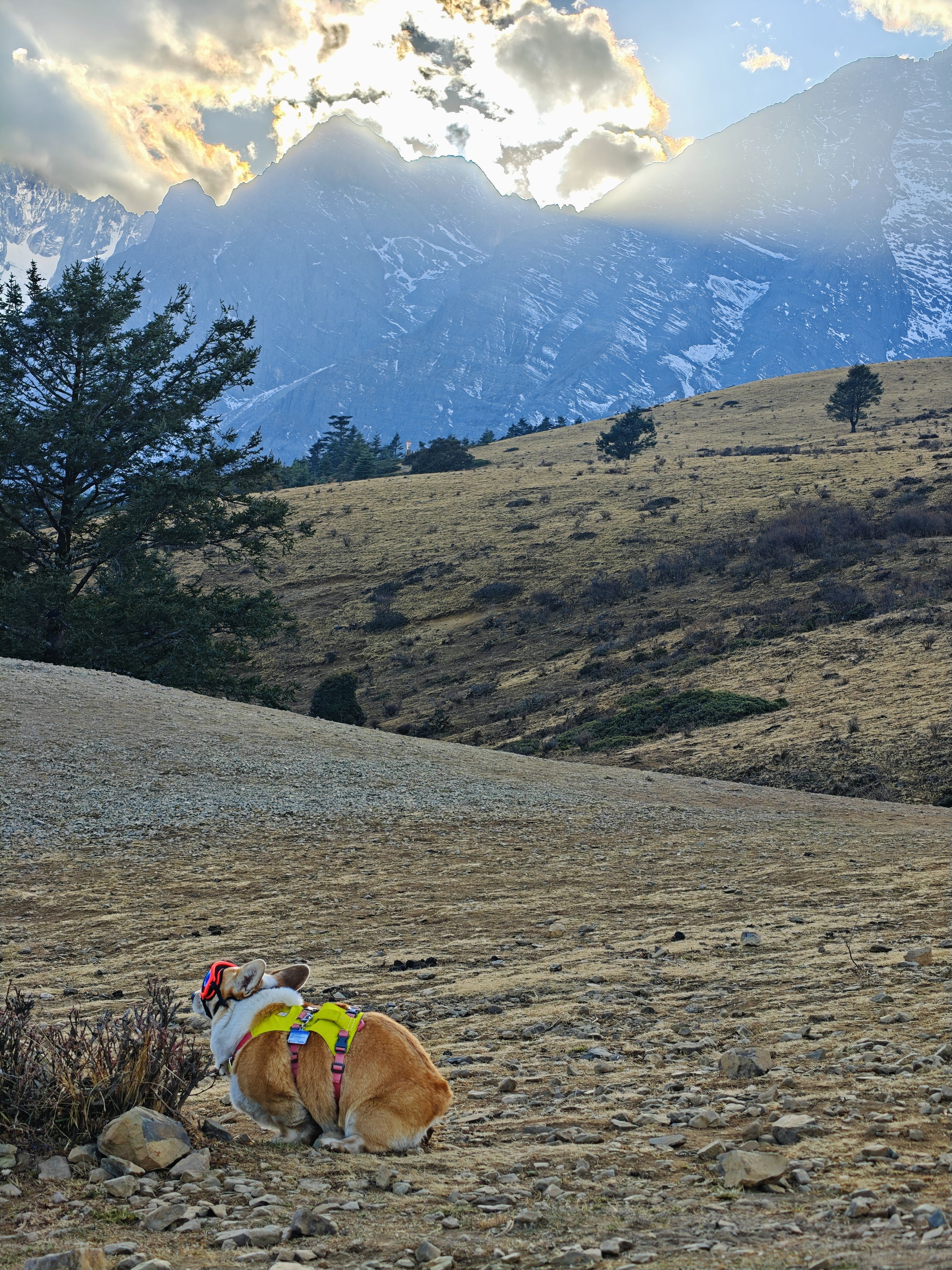 日照金山下的小狗