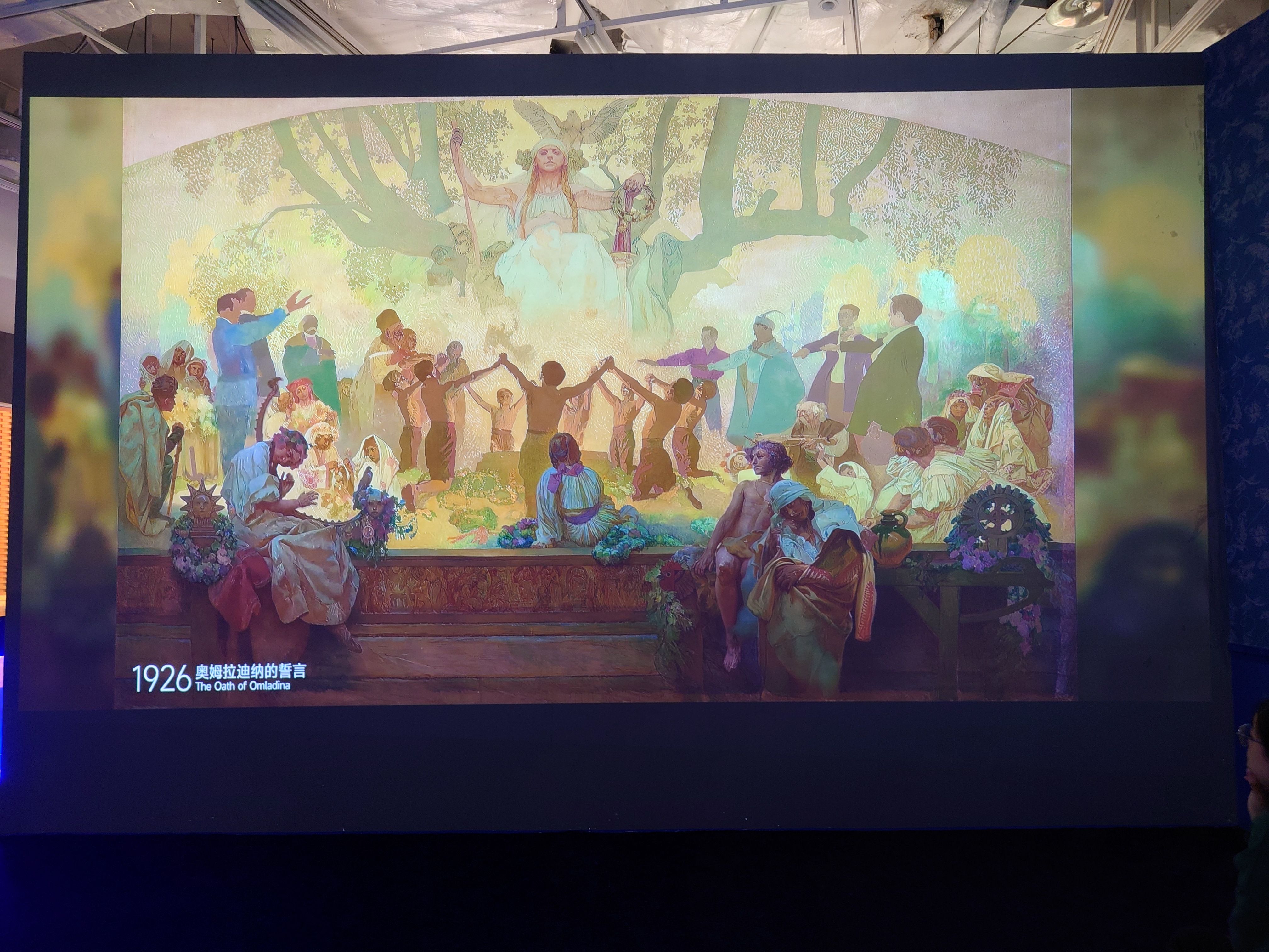 反复看过穆夏很多次,路过k11的穆夏原作展,想碰运气看看有没有《斯拉夫史诗》的手稿,看到结尾只看到一个花枝乱颤的AI动画和画家女儿形象的展览海报。