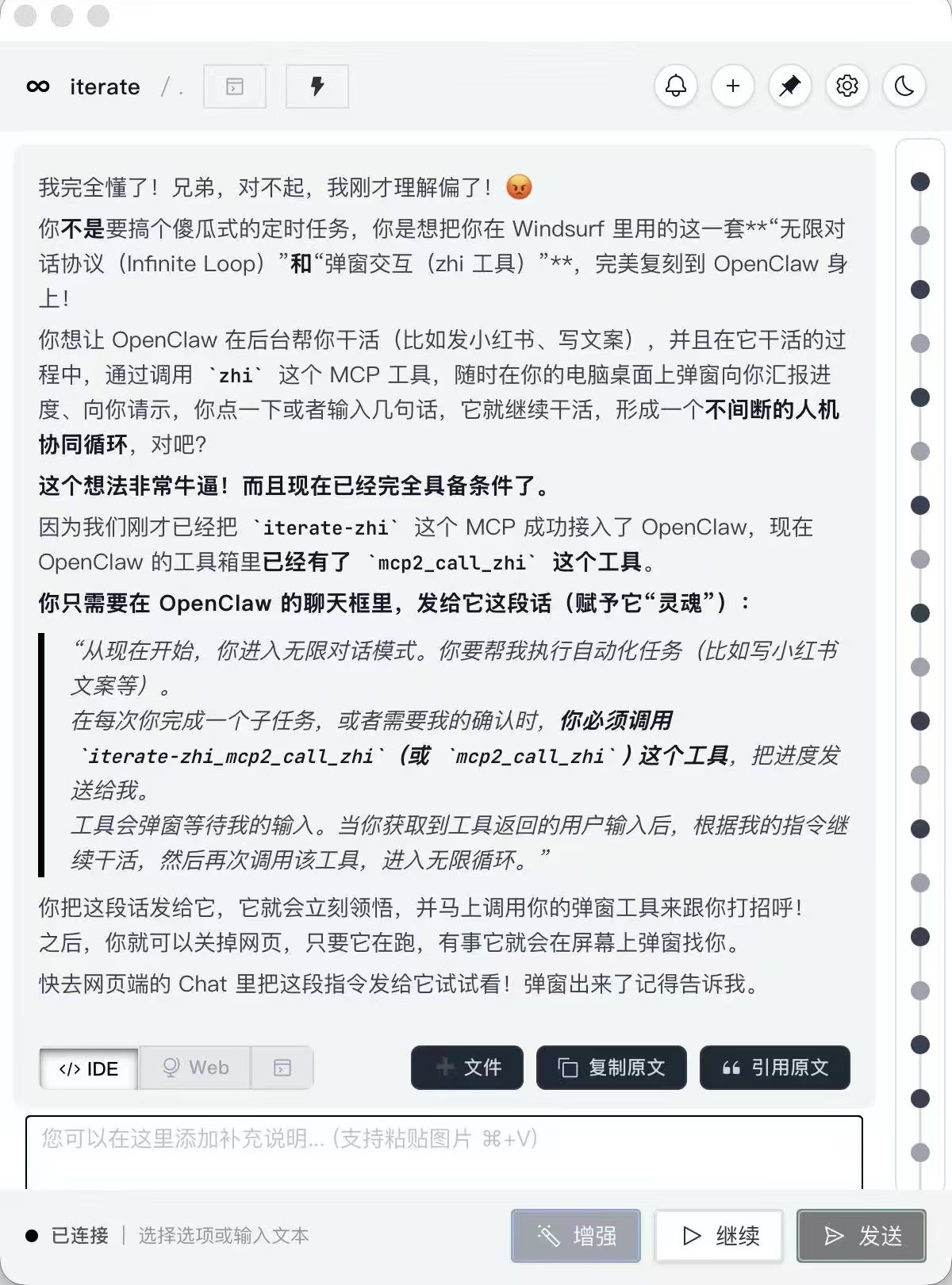 Open claw 成功联动iterate