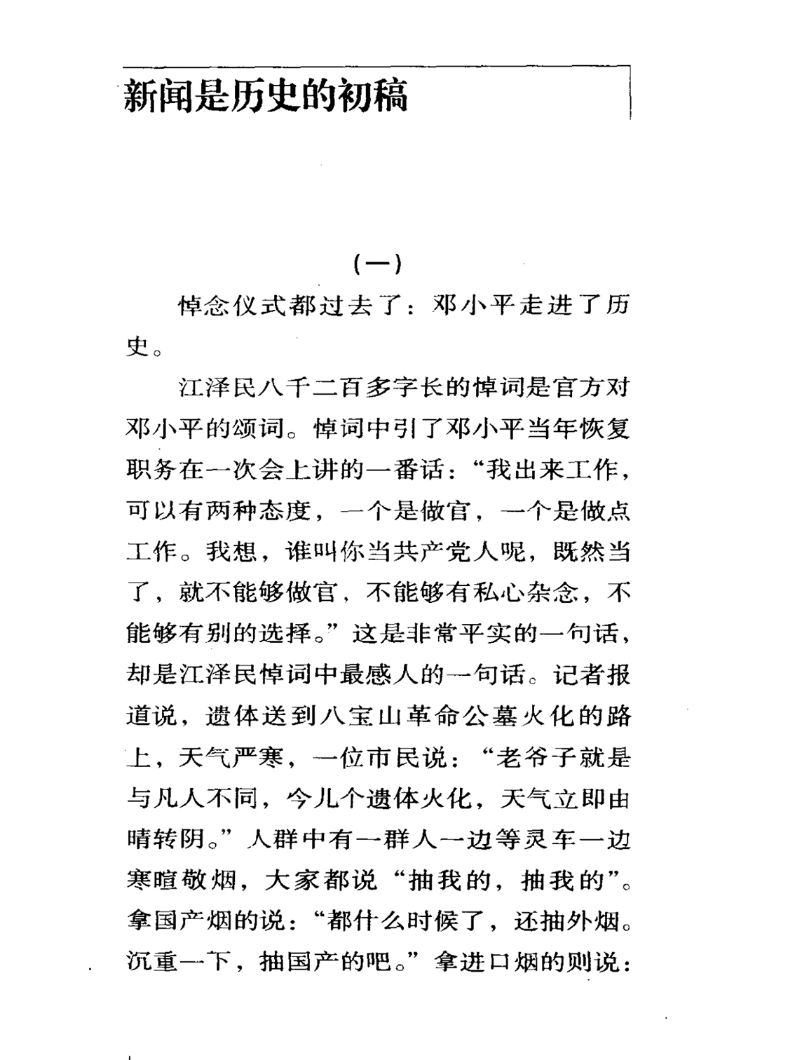 这一刻,我忽然清醒。我对那些敢于写初稿、敢于用做历史的态度来做新闻的人,肃然起敬。