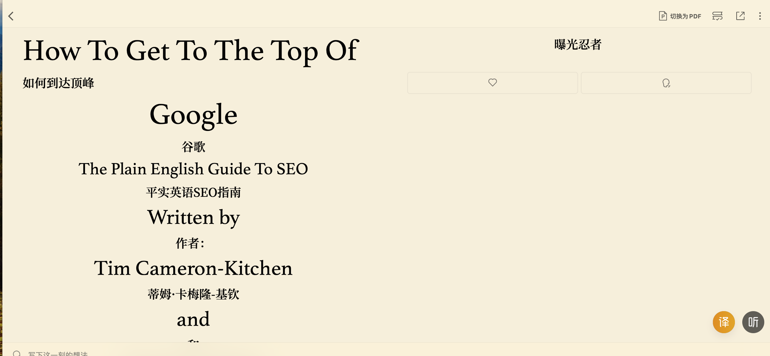 目前也是在疯狂学习和积累阶段,想要加入下一波的AI创业浪潮。想要学SEO,所以加入了哥飞的社群,知道了即刻,想把自己学到的,知道的,思考的分享到这里。