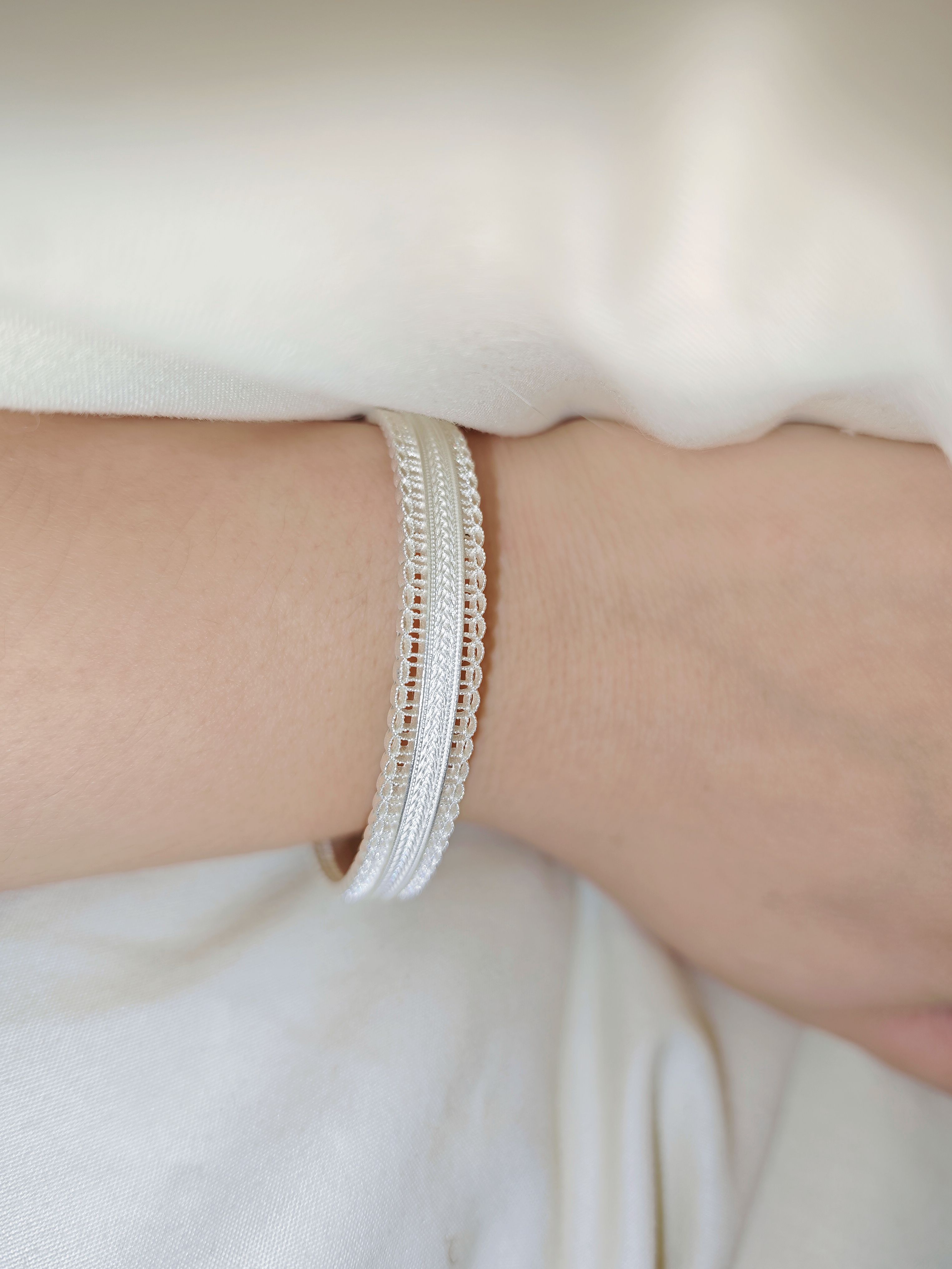新买的银镯,看起来跟塑料一样
