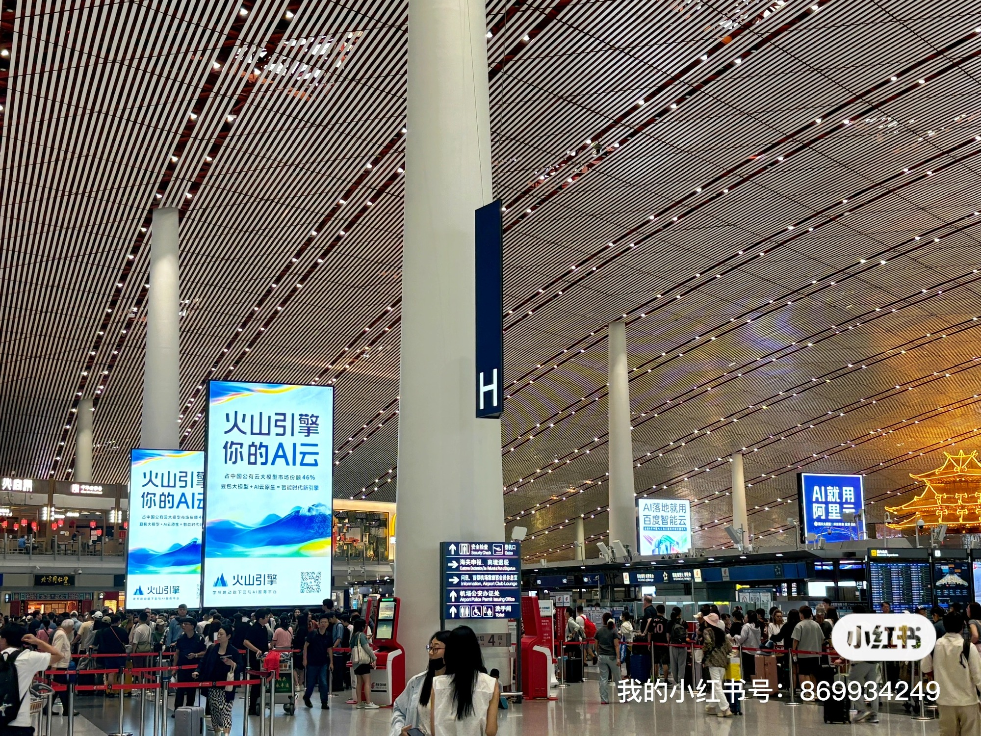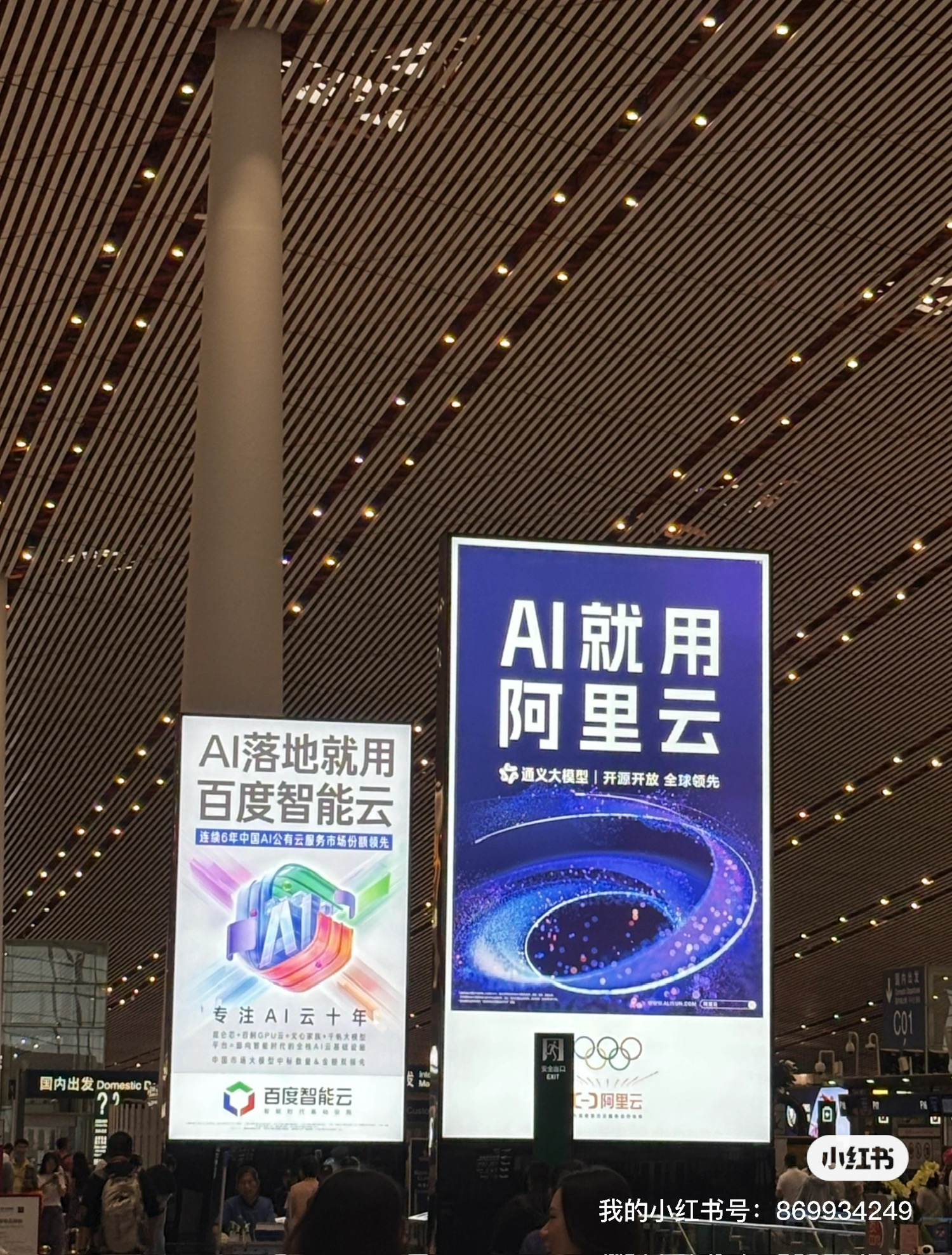 谁家最能打不知道,但就首都机场的广告位来说,火山引擎和阿里云打得最凶,一进机场大厅遥遥就能看到,好奇躲在后面的百度智能云,你打广告图啥?就图被两大竞品挡住视线和光芒?声势上先弱人一半……