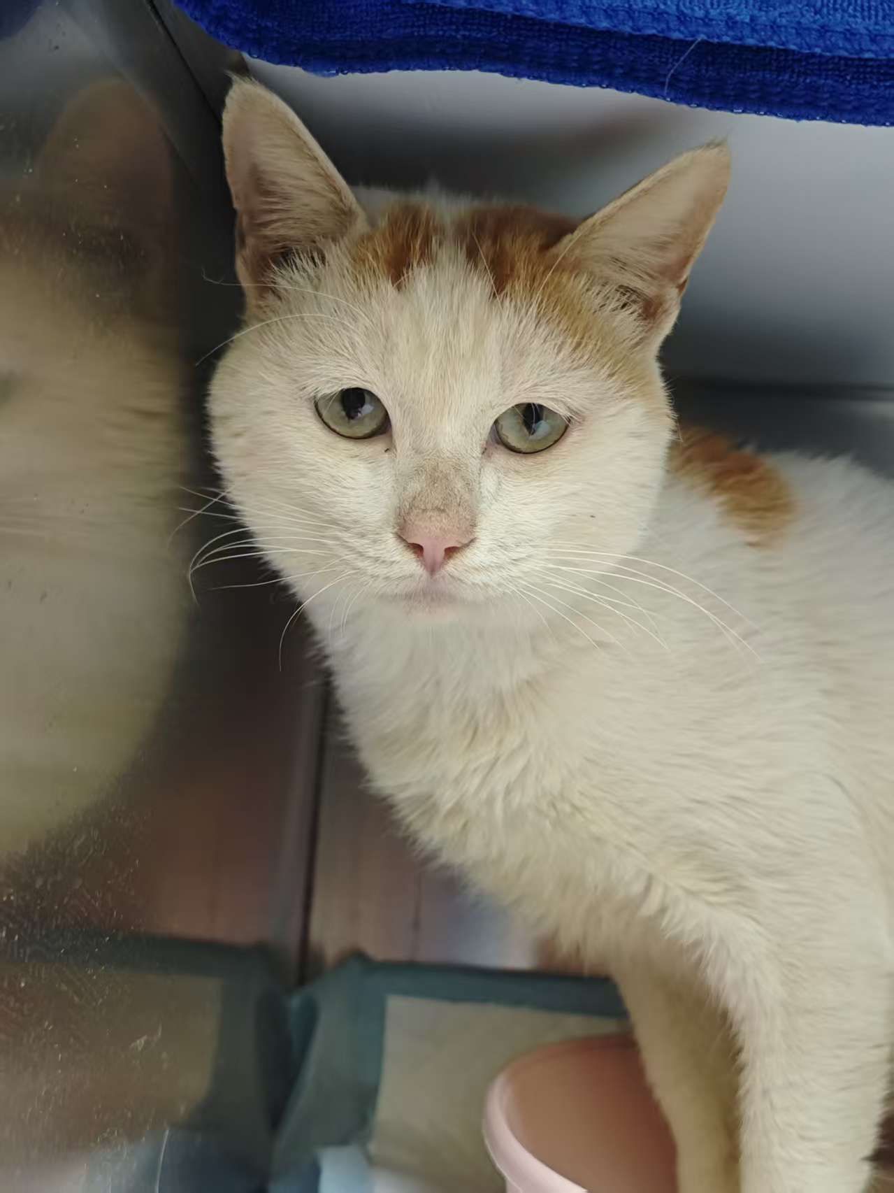 阜阳橘白猫咪找领养啦,是只一岁大的公猫。胃口超级好,性格乖巧,关在笼子里也不会闹,会伸脑袋主动找人摸摸。