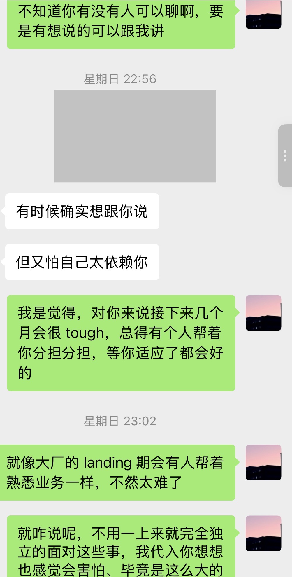 我想我今天终于知道,为什么我开始不抱有期待了。因为在那一段直面问题的对话后,我接受了他要离开的事实,我总算接受了。我可以理性的把喜欢从他身上抽出来,但好像也放不到别人的身上,我原来那么喜欢谈恋爱的火苗、或是种子好像死在他身上了一些,也暂时长不出新的来。