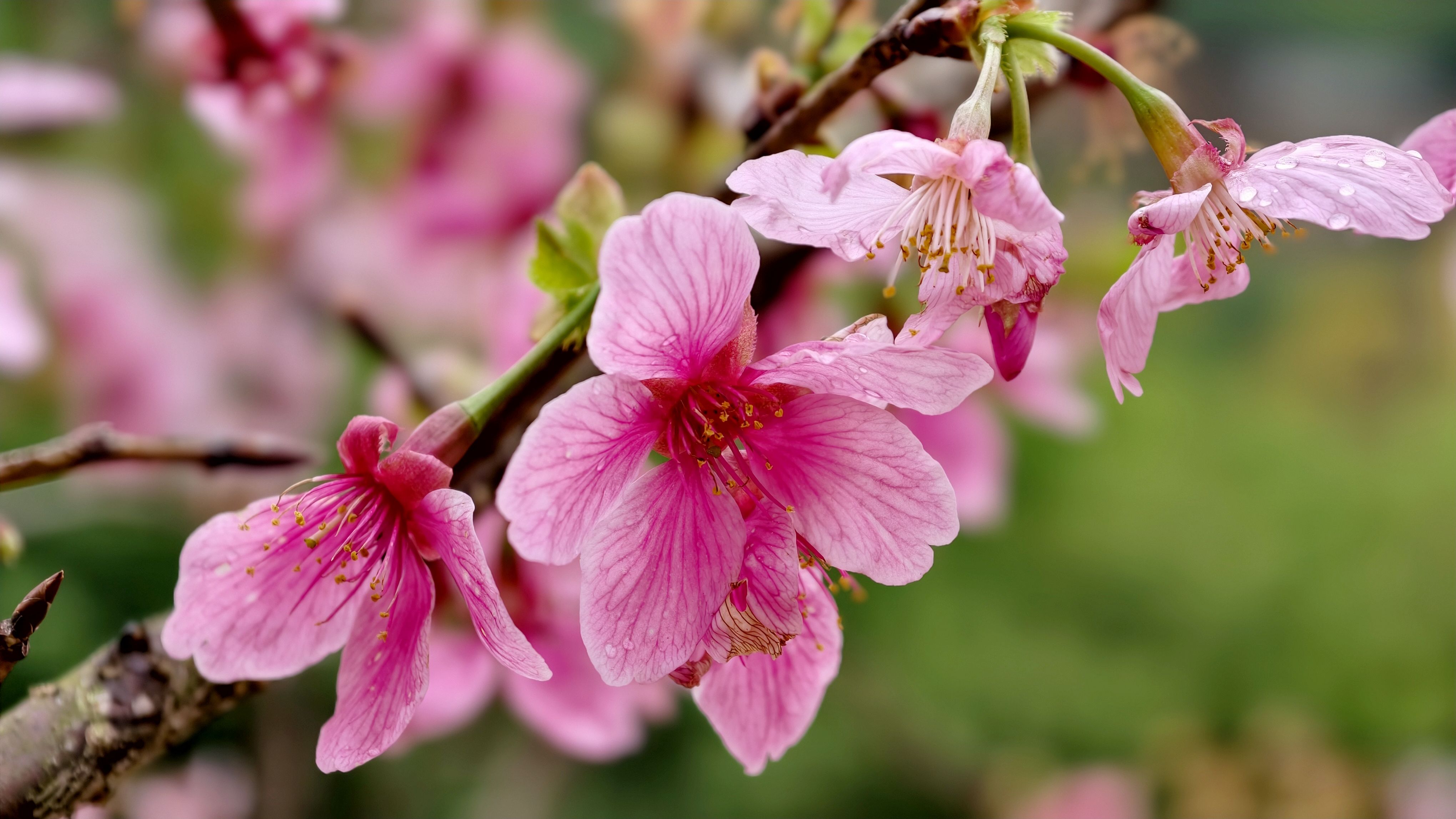 远山含黛,沾着晨露的粉樱缀满枝头,这一程春色都藏进镜头里。