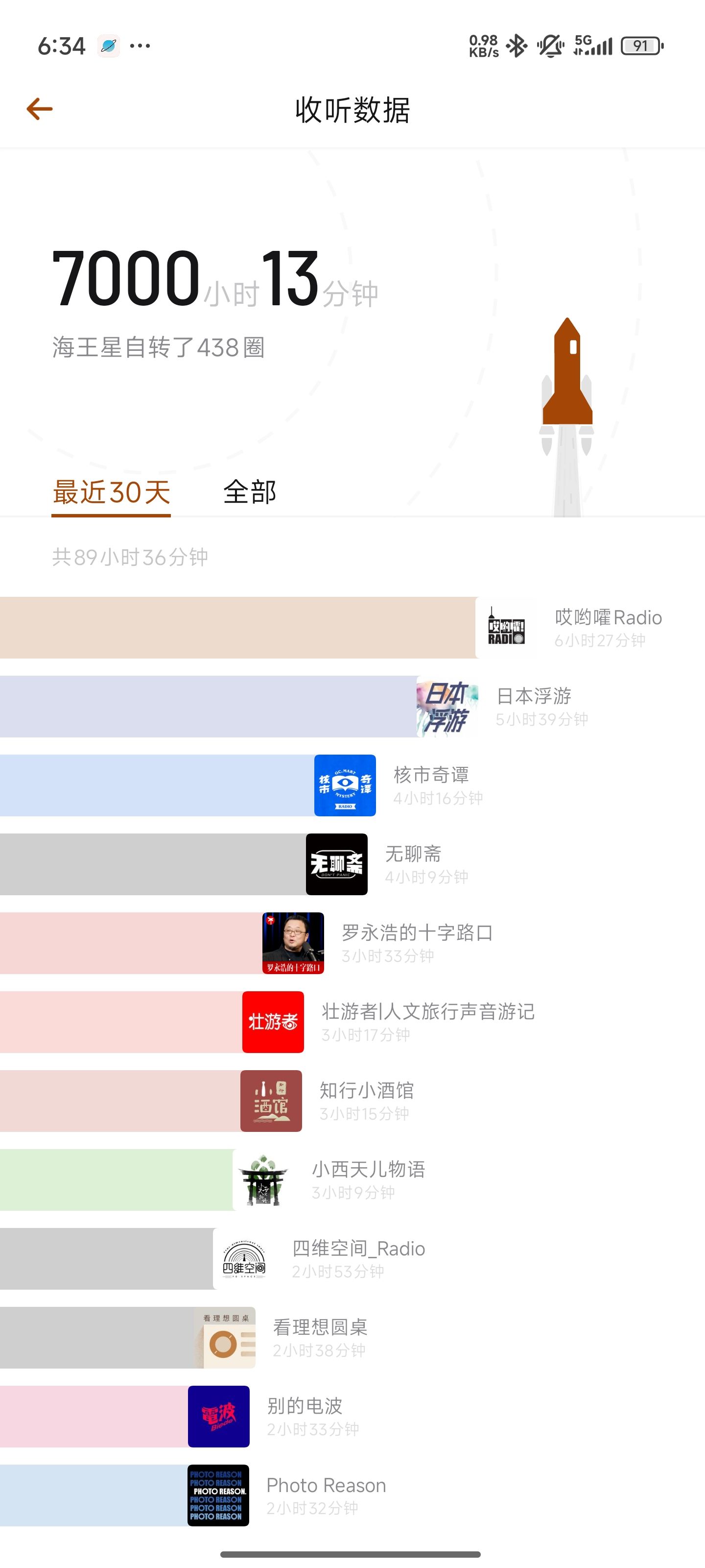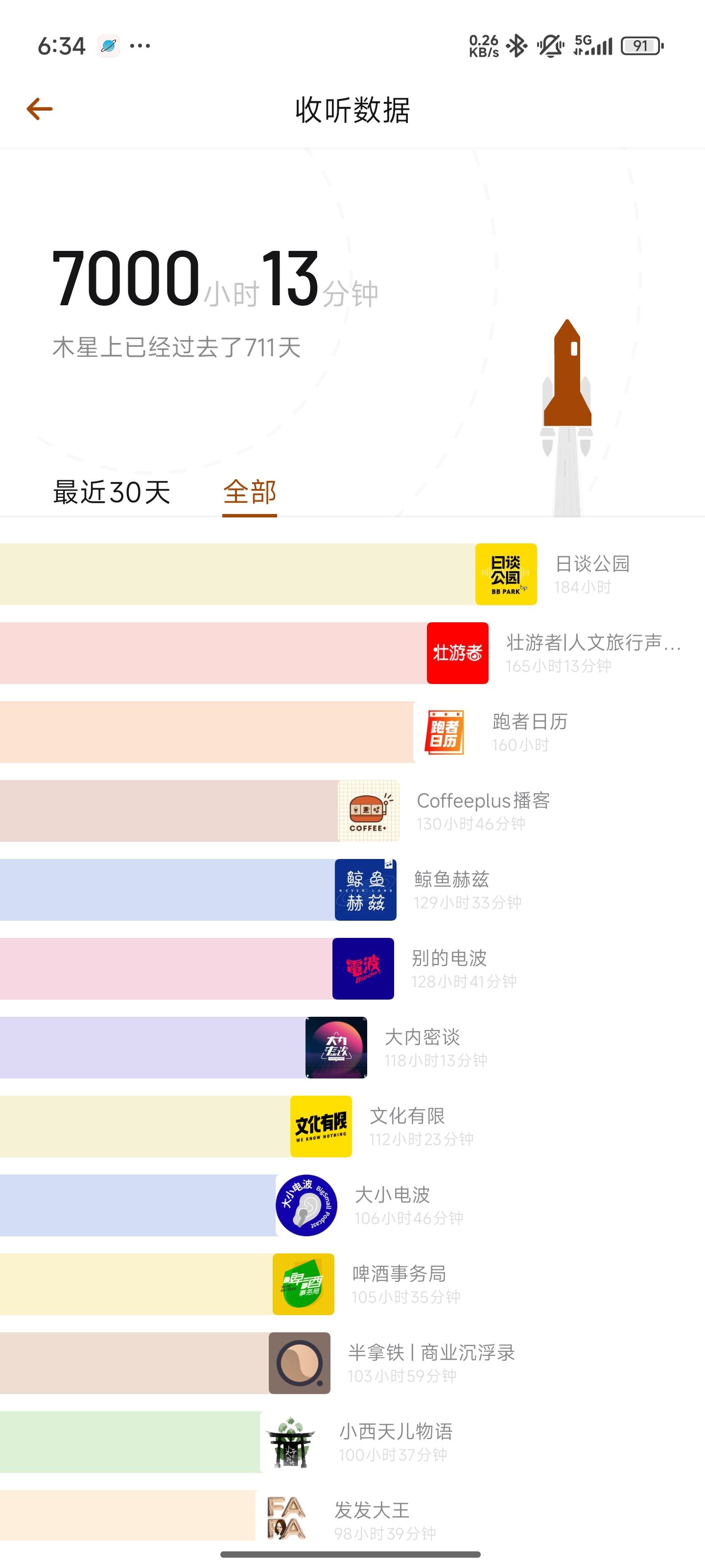 小宇宙收听7000小时了!