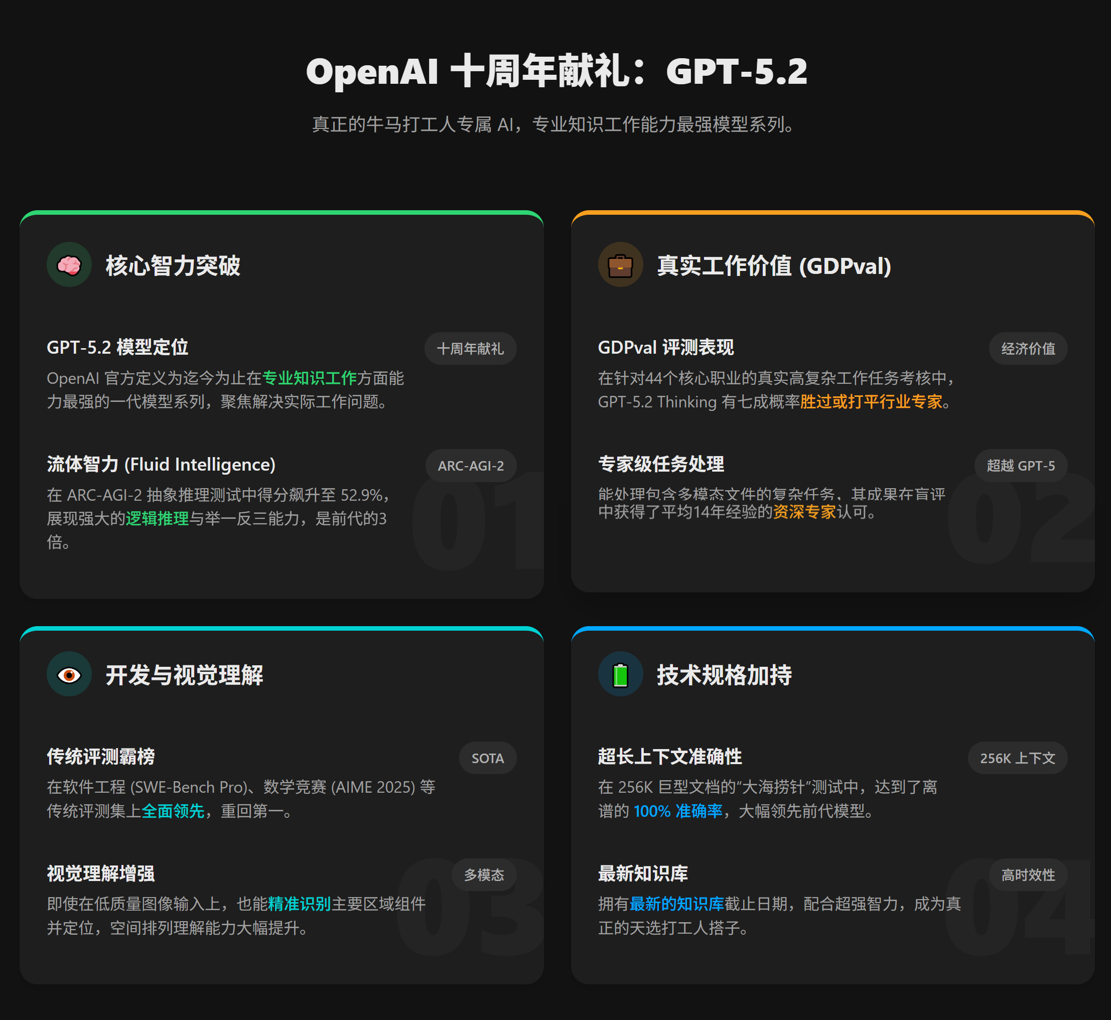 OpenAI正式发布GPT-5.2,核心突破主要在专业知识工作场景。