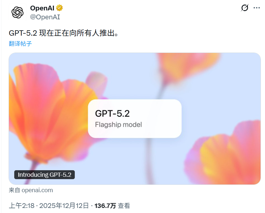 GPT-5.2正式发布!专业能力超越人类专家。