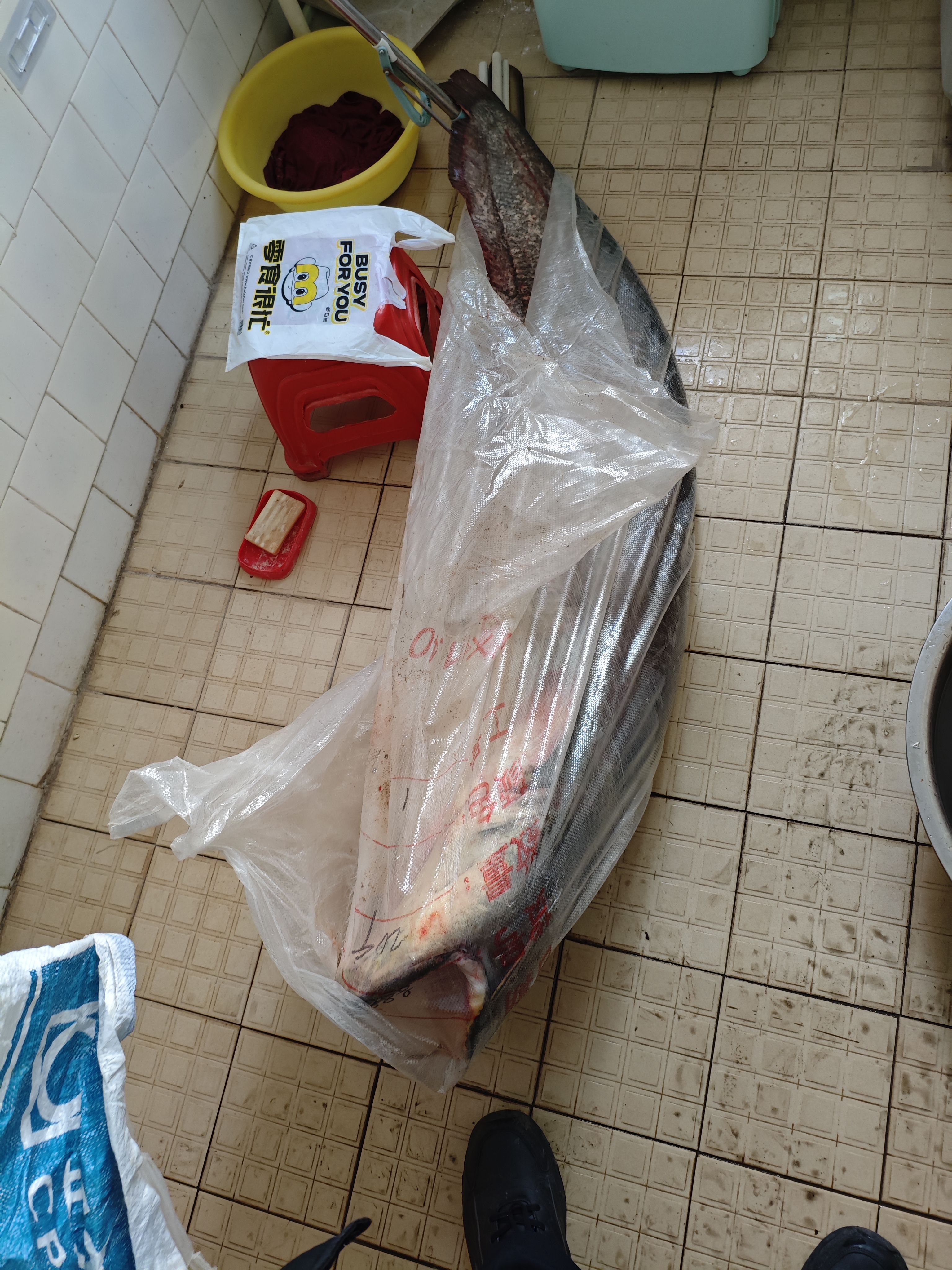 明天过生日,我哥今天搞了一条鱼让我们吃。。。。73斤的鲢鱼,我擦嘞,从没见过这么大的鲢鱼,鱼肠子都和牛肠子一样粗🤣