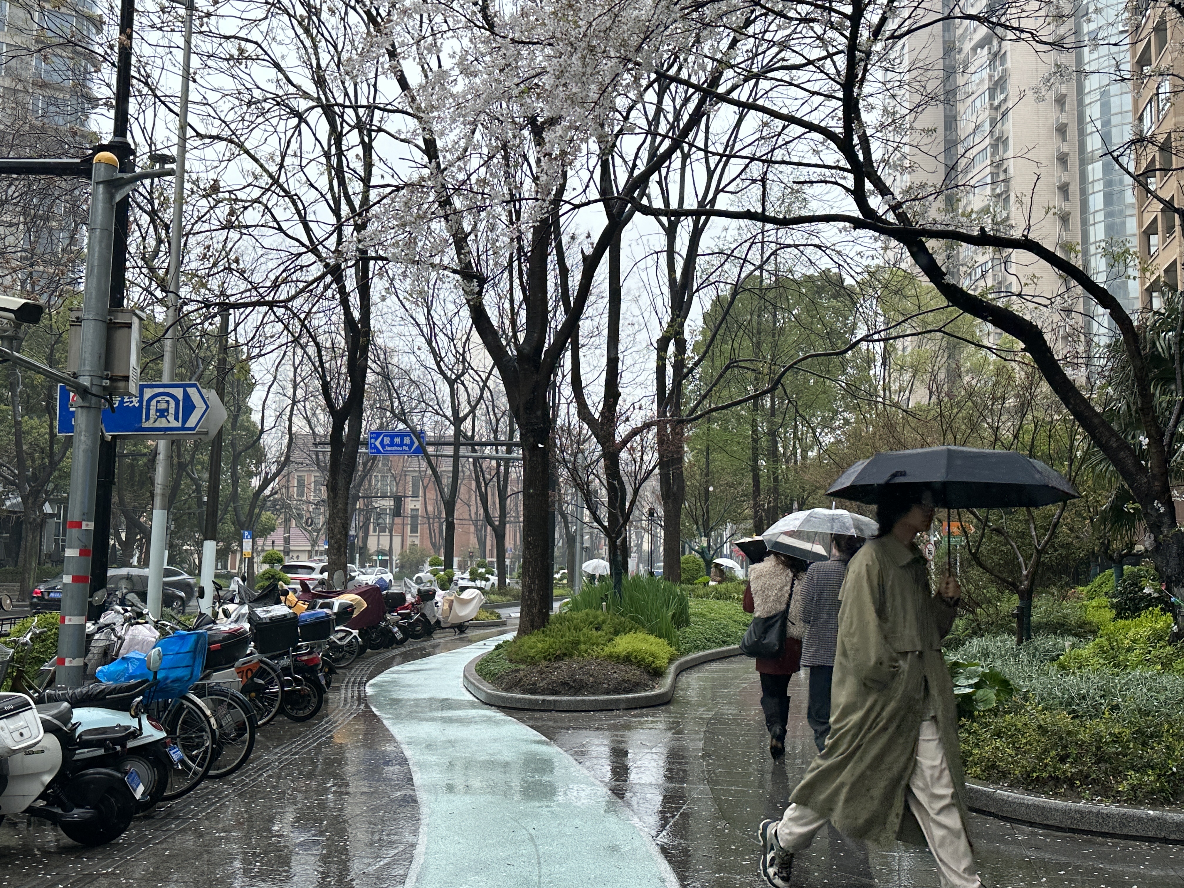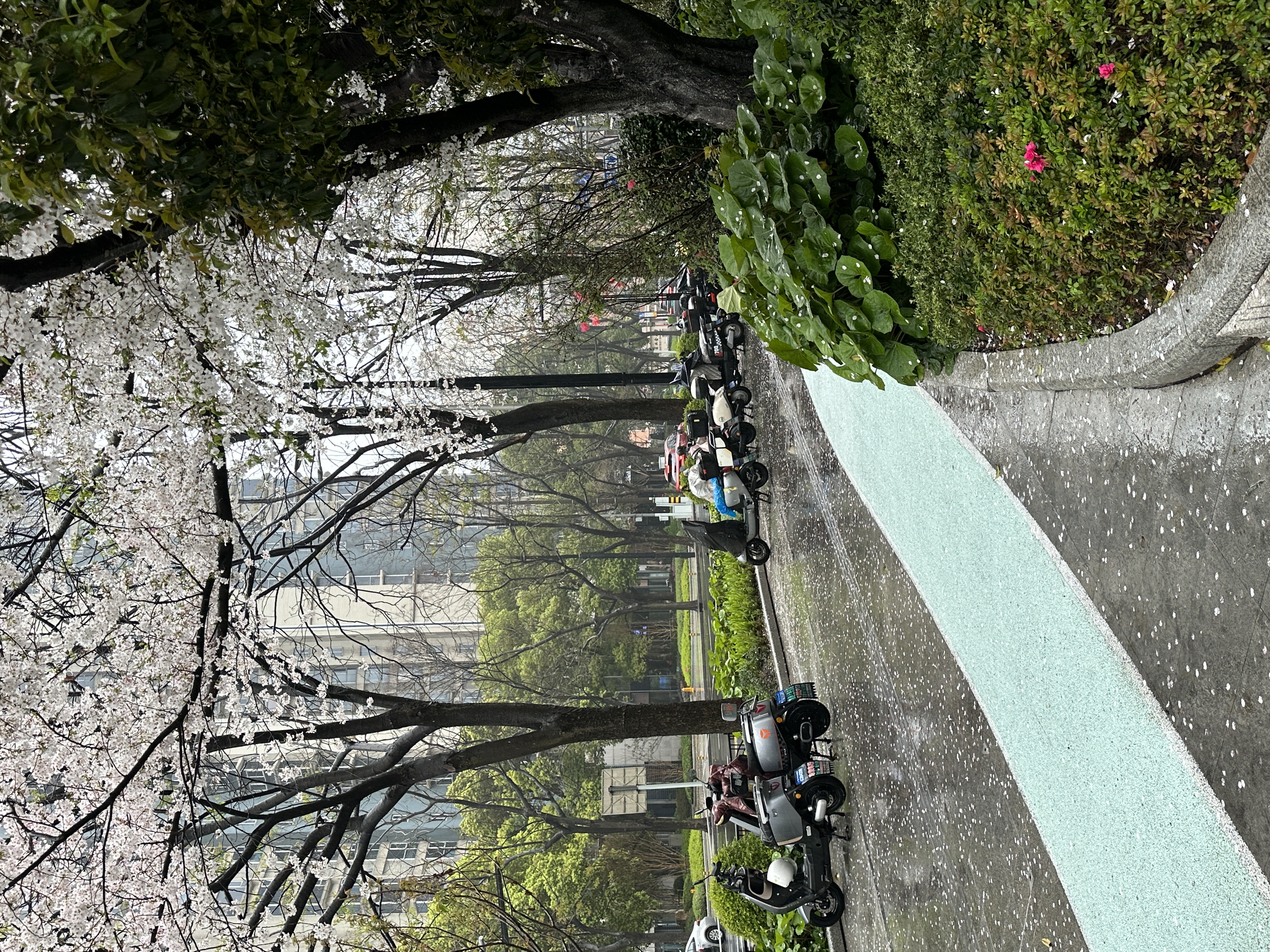 起跑时发现小区里的樱花、海棠花挺多的,跑一步停三步欣赏;