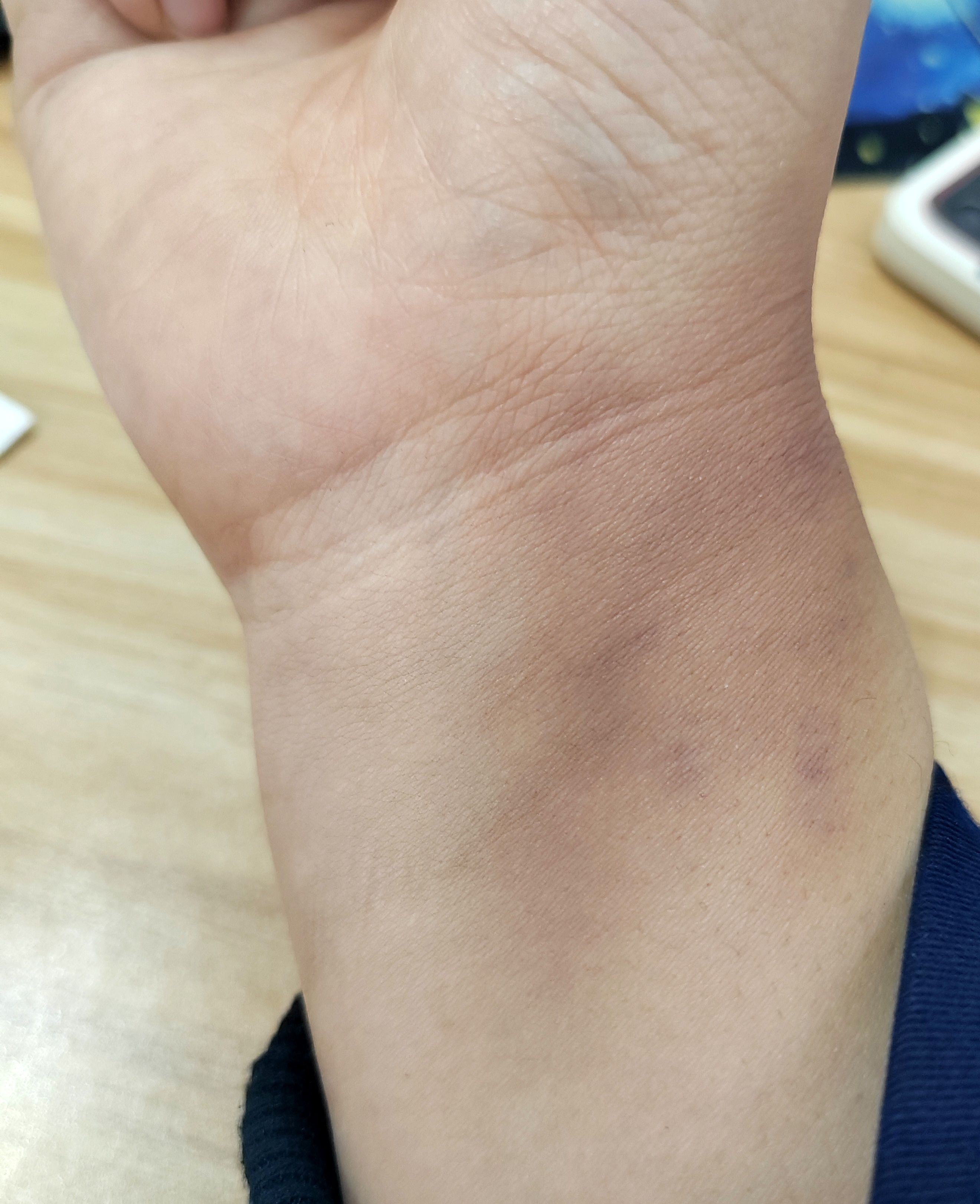 因为胳膊找不到血管,所以从这里抽的。这还是头一次知道还可以这样呢。