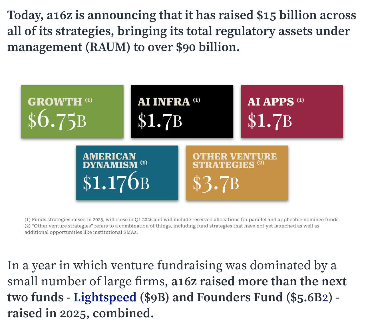 a16z 最新募的超大型基金,还不忘拉踩下同行 hhh