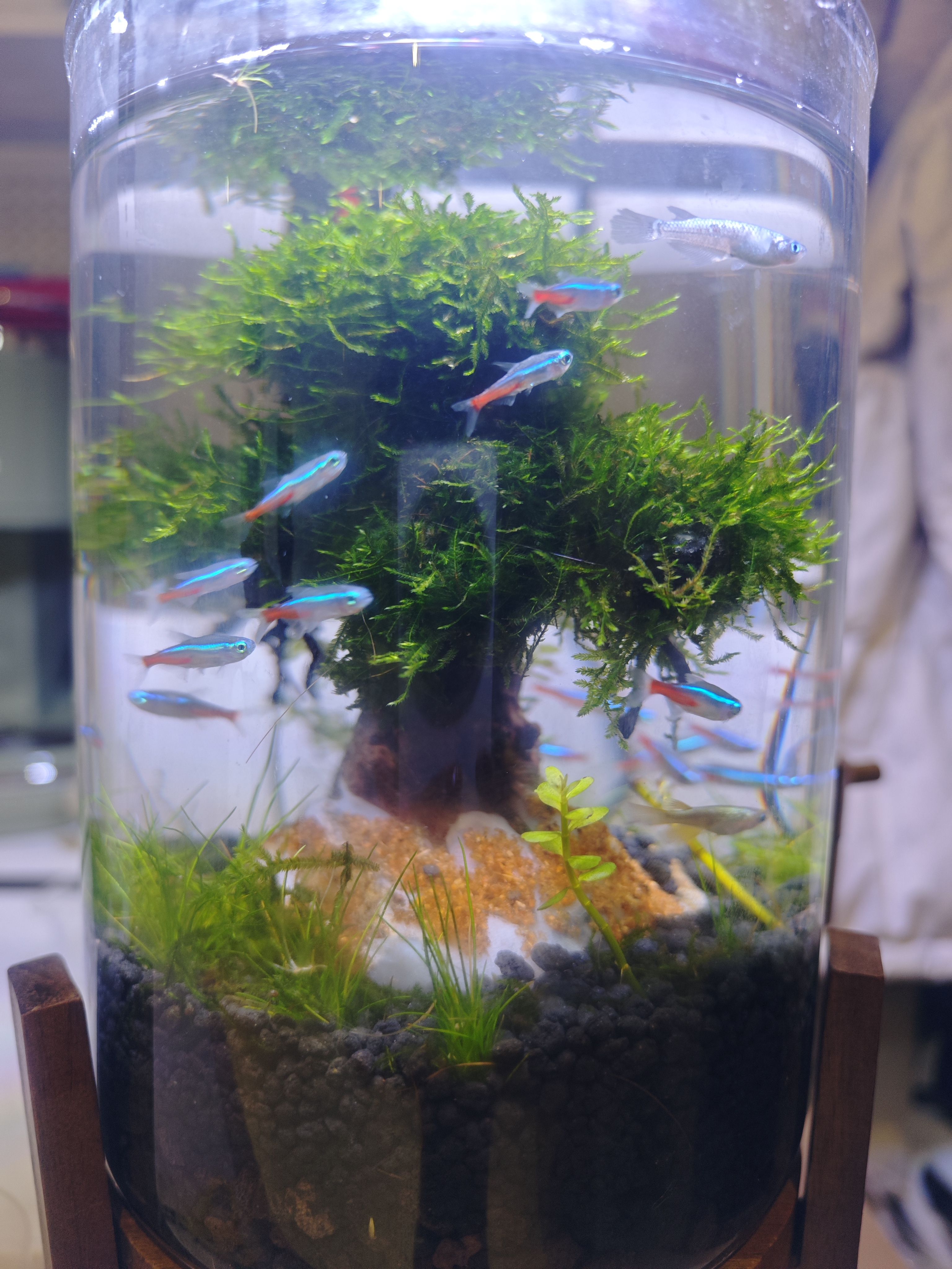 最近还养了鱼,养了花,小鸟也很身体健康。