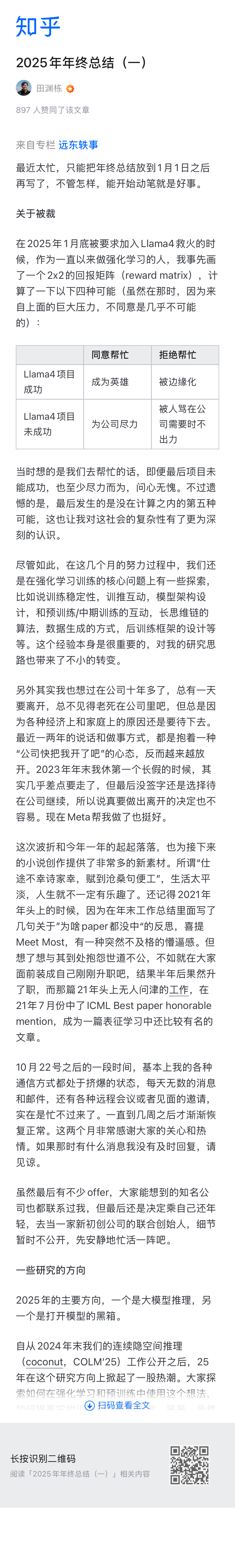 前 Meta 大佬田渊栋的年度总结