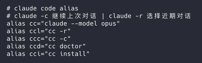 配置了一些用得比较多的claude code用法的别名,好用程度+++