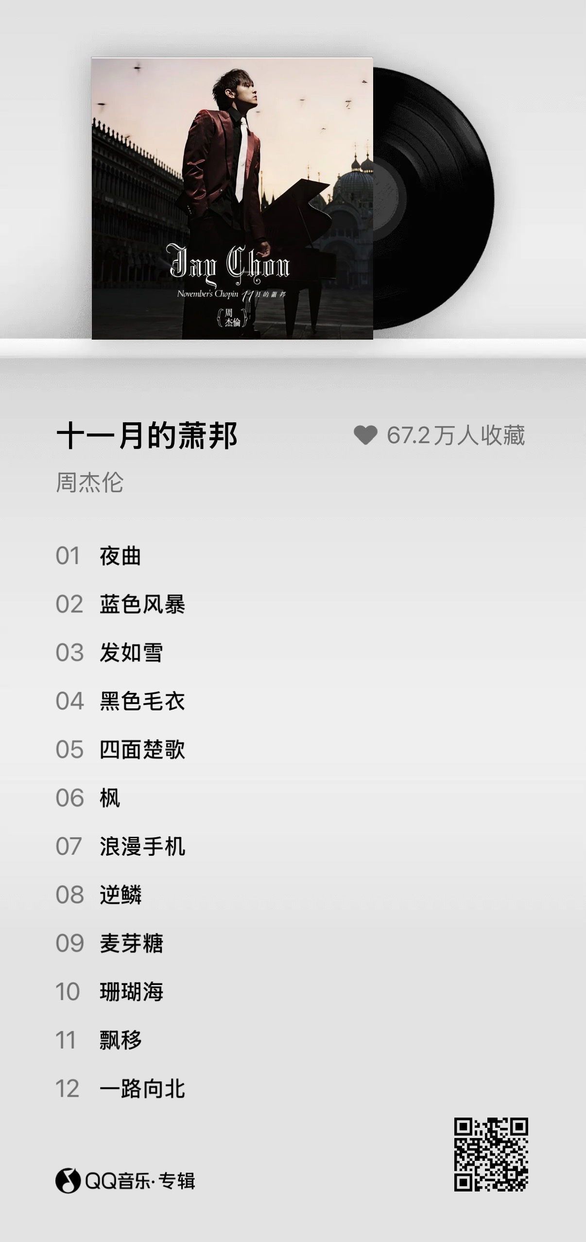 小邱很行: 周杰伦的十一月的萧邦真的无敌了,每一首歌都超好听,真的是每一首歌