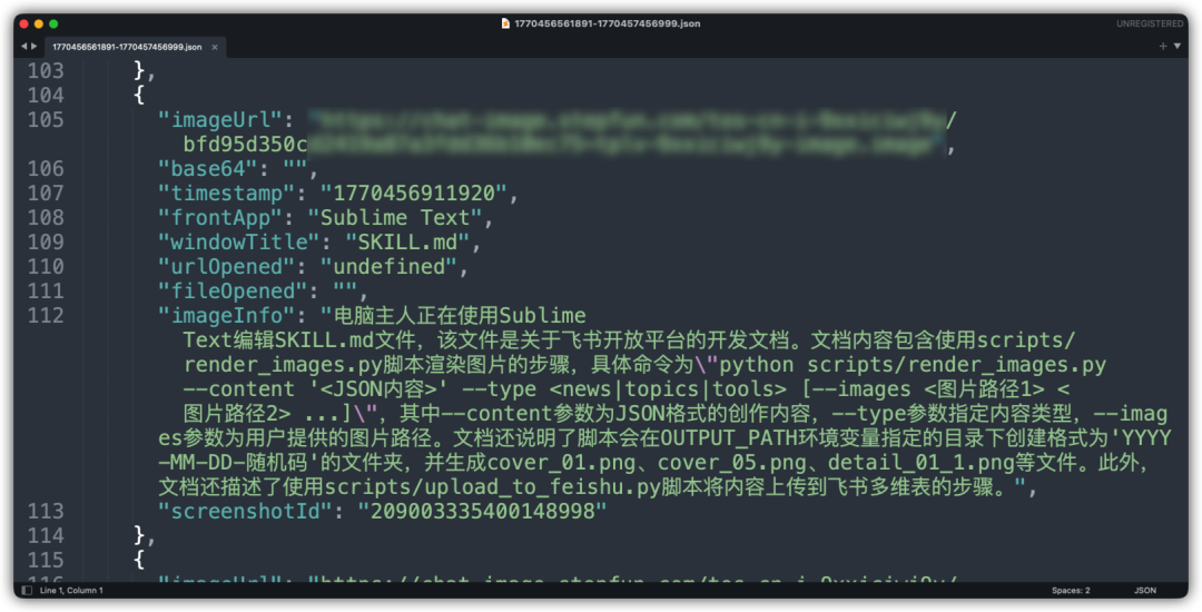 我目前重度使用的 AI 工具里,有一个是「每隔 5s 截一张我活跃屏幕截图、识别我在干嘛、记录为文本、保存在本地」,非常详细,见图一。