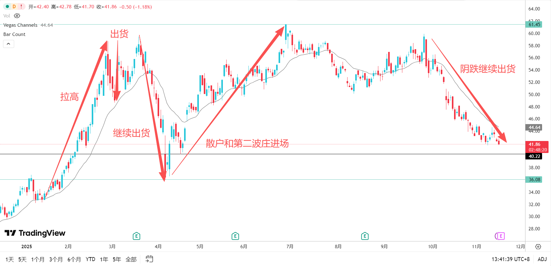 历时一年,小米大庄基本完成了出货计划,雷军不知道贡献了多少股票给股民,但是绝对不少。未来小米大概率会在36上下作为磁力位来回震荡。就像利弗莫尔说的:“通常,控盘是为了激活市场,好在高价位大宗出货。"