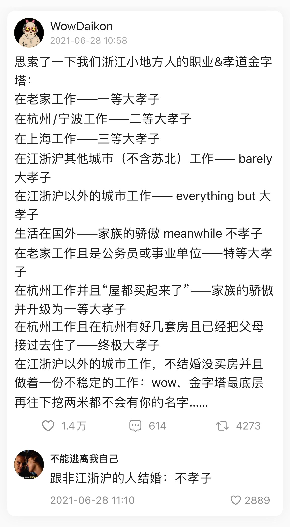 程瀚: 很多 PM 真是挺好玩的。明明就是日常瞎写点东西,要说「分享一些碎片化的小想法」。明明自己能力不行说不清楚说不完整,要说「太忙了没时间细化」「感觉是个有趣的思路等有时间整理得体系化一点」。动不动「关于 XXX 的一点思考」。大学刚毕业没两年,好为人师,张嘴就是大趋势。Share 的能力都没有整天 teach teach teach,内心里住着一个五十岁的厅局级干部。都做过啥产品啥功能啊?张小龙小号啊?真不知道这种思考体系和话语体系是怎么逐渐建立成这样的,我是觉得有点走火入魔了。 不过是恰好入行的时候做了一个行业内比较核心的工种,真觉得自己被命运选中了?成天就是产品产品产品,出门逛了个公园也能想到 3000 多个产品的底层思路,「串起来了!」一天天活得融会贯通见微知著的。 别这样,生活不仅有 App Store 里的产品,还有很多事情可以关注可以好奇可以觉得有意思。 哎我还能再喷两万多字,可是这里地方太小写不下。况且我也太忙了没时间细化,有时间再整理得体系化一点。 是个有趣的思路!