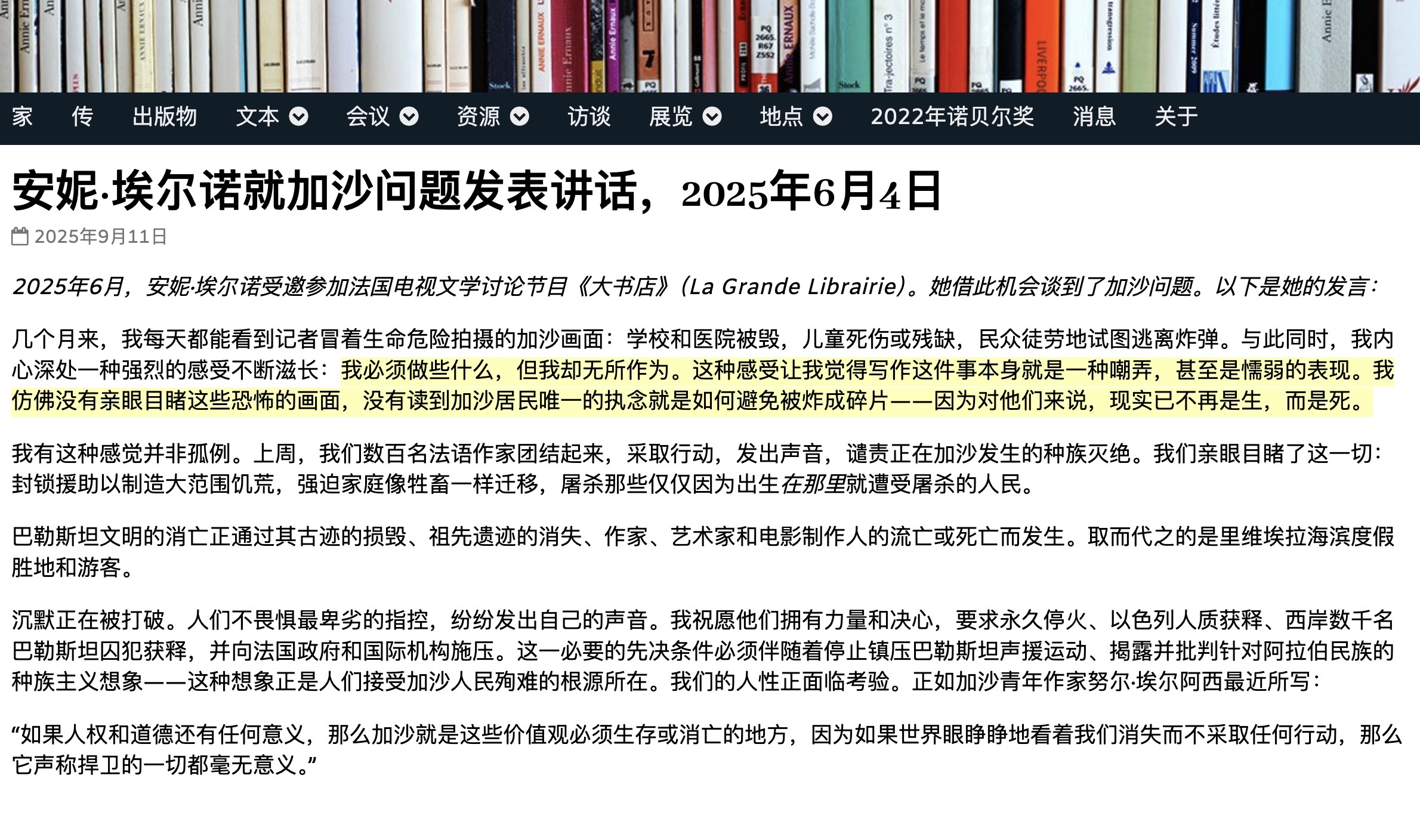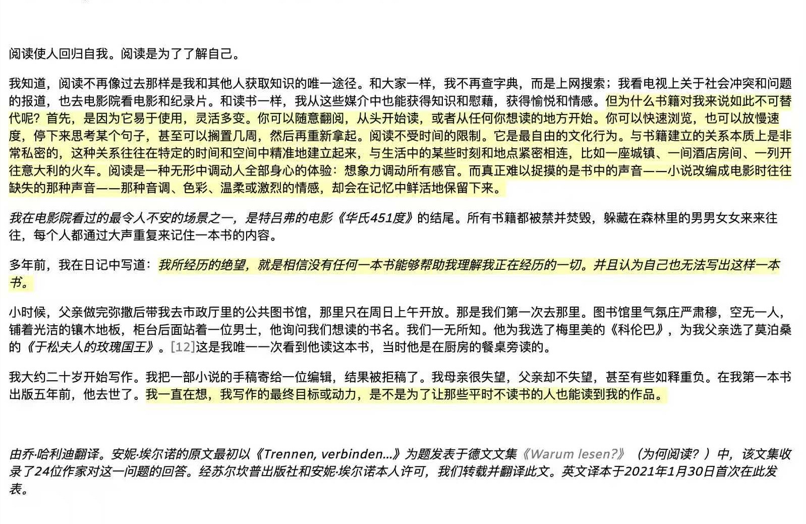 每当我阅读安妮·艾尔诺,心里总会涌起一种声音:走出去吧,到人群里去,到更广阔的世界里去,别再困囿于自己那片羞耻与痛苦之中。又或者,如果这痛苦注定是我的一部分,那就用它做点什么吧,为那些同行的跋涉者做些什么。