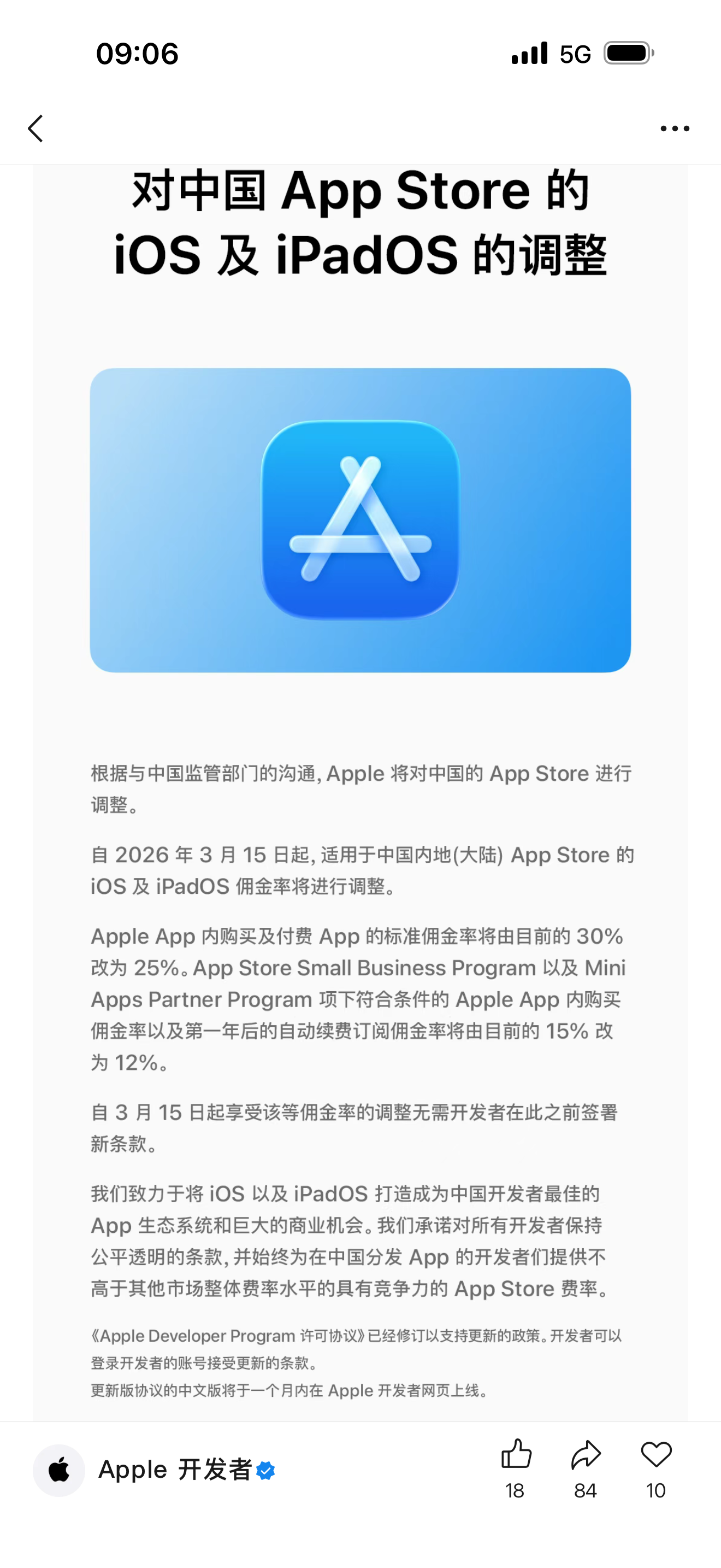 我勒个...活久见😆苹果下调中国开发者抽成了。