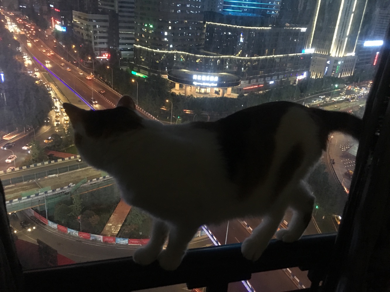 这只猫喜欢跳上栏杆,欣赏它的江山🤣