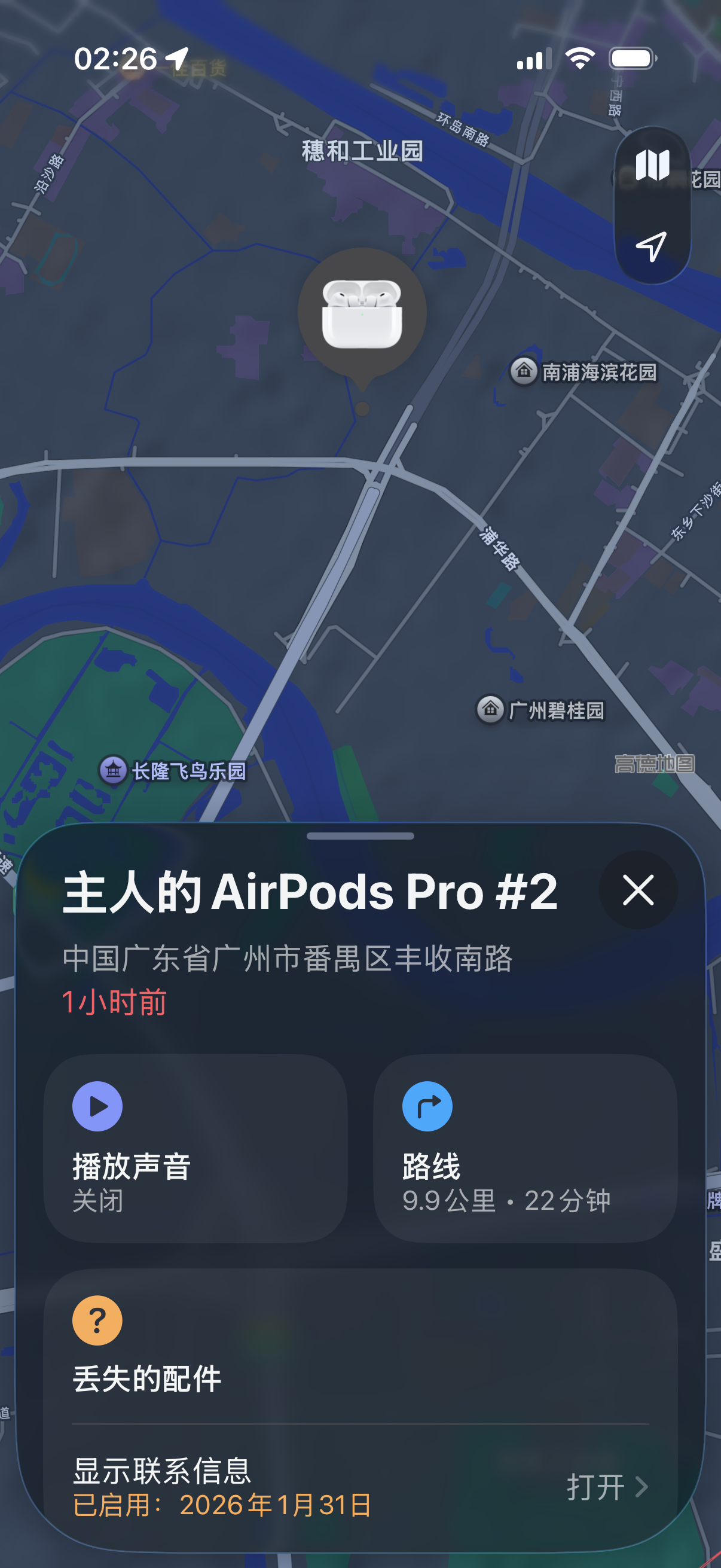 AirPods不见了,地图上的定位是我没去过的地方。开启丢失模式,不知道有没有用。