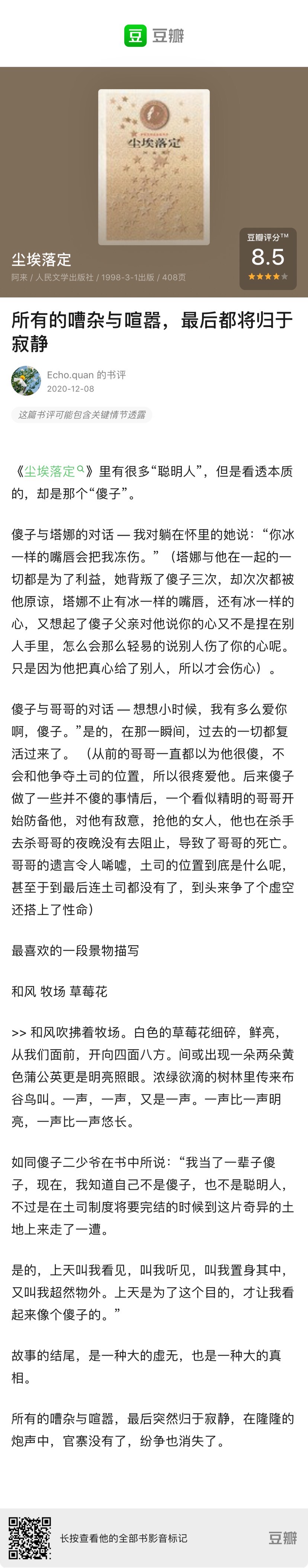 一辈子的事情都放在了这本书内,提钟书提的最多,他的文采、他生活上的笨手笨脚…夸女儿聪明,学习好。从小时候对女儿的描写到女儿去世一直都是夸她读书好,对自己似乎并没有什么夸赞我们仨里“我”却是最少的。