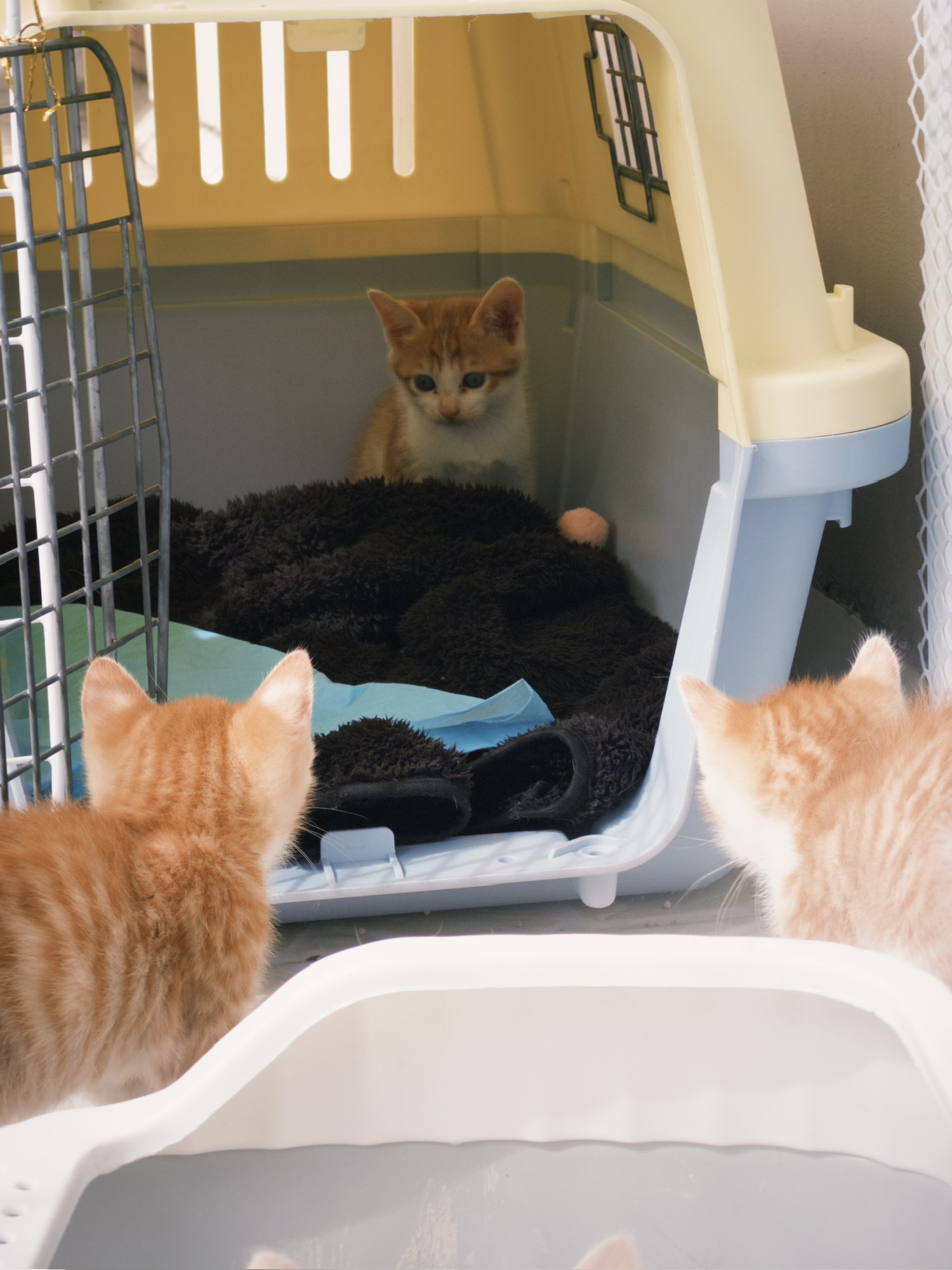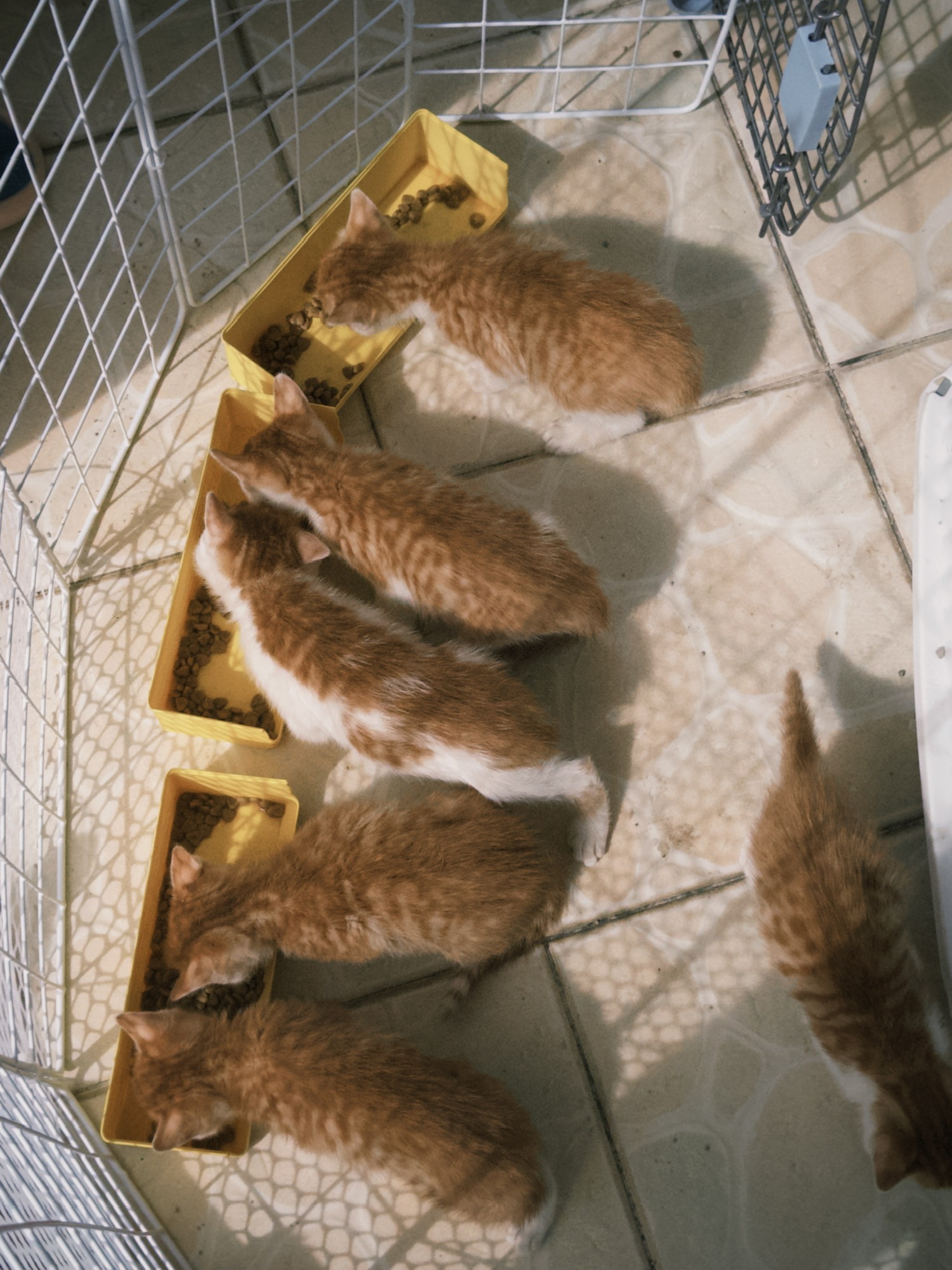 每天投喂的流浪小橘,在降温的时候,叼来了她刚生一个月的崽。崽崽太小太可爱了,自然而然地就养了起来,打算等完全断奶了再找领养。逐步断奶之际,3d打印了3个喂食槽喂小猫泡软的幼猫粮。每次放饭看小咪们排成一排吃得很香,有种喂猪的安心感。吃上猫粮后,小咪们迅速增加体重。