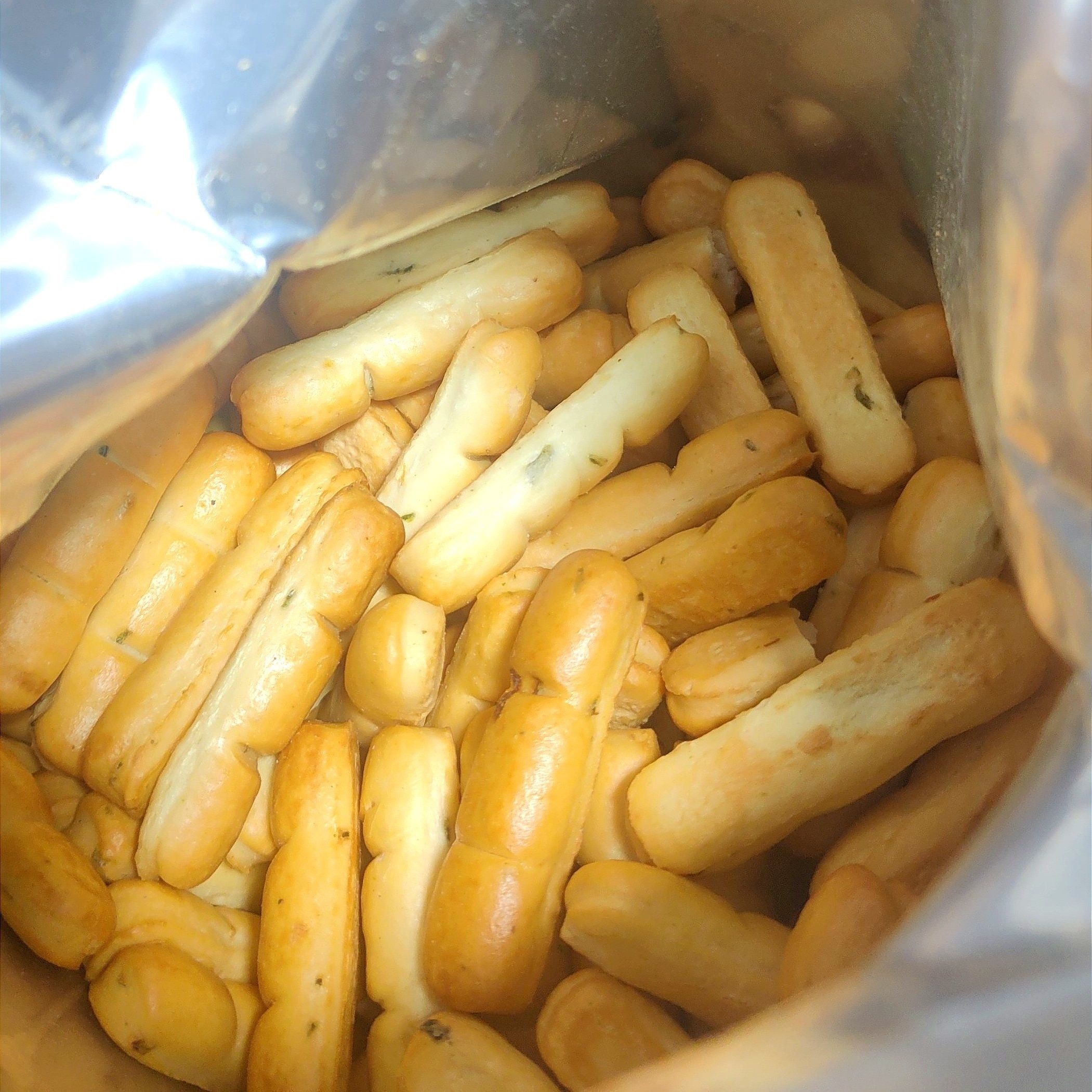 这种脆脆的小点心真的好好吃啊,我甚至不知道它的正式名字。从别处薅羊毛薅来的葱油味的 500g,吃完了还想吃!😋