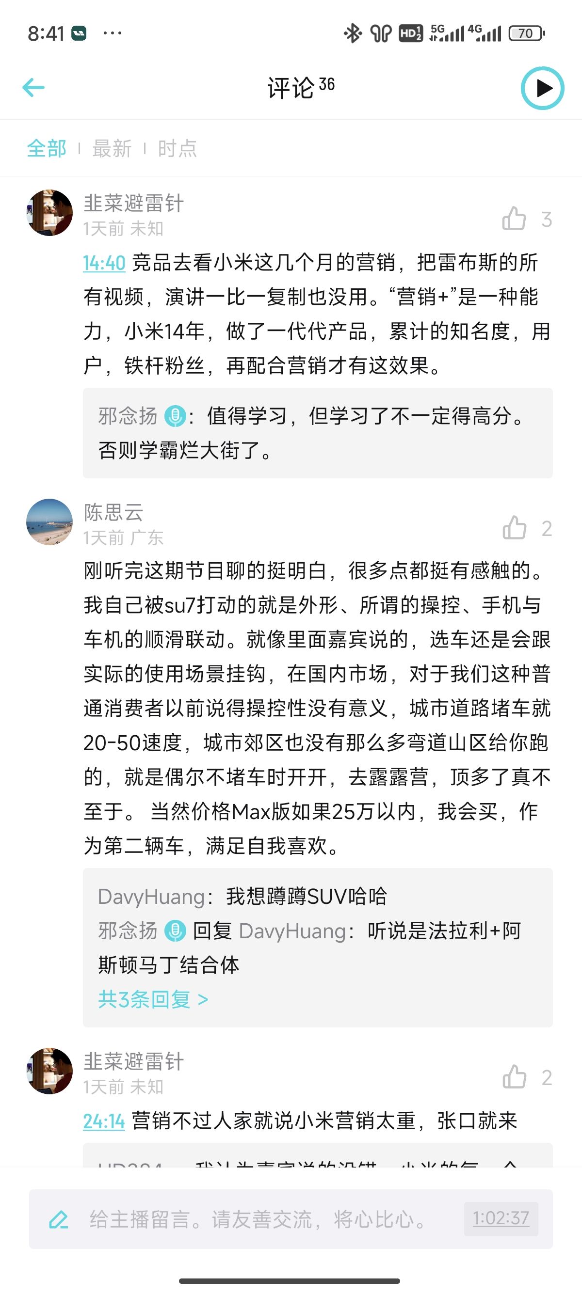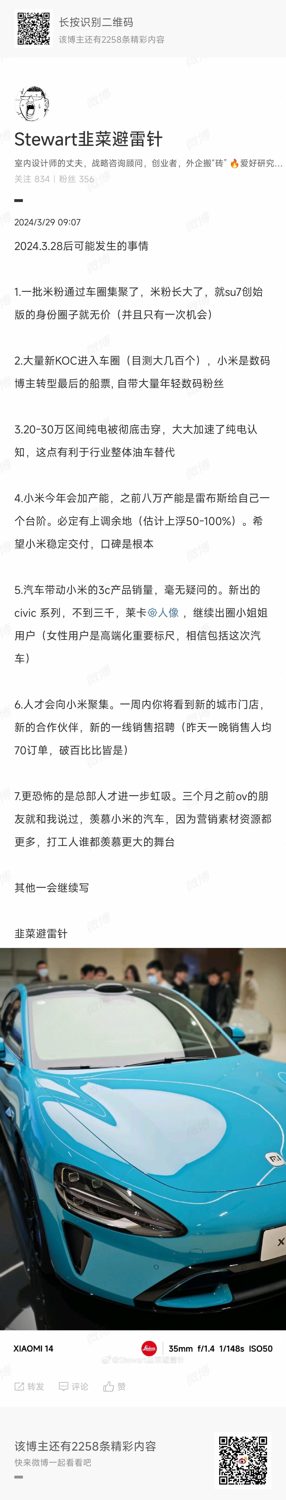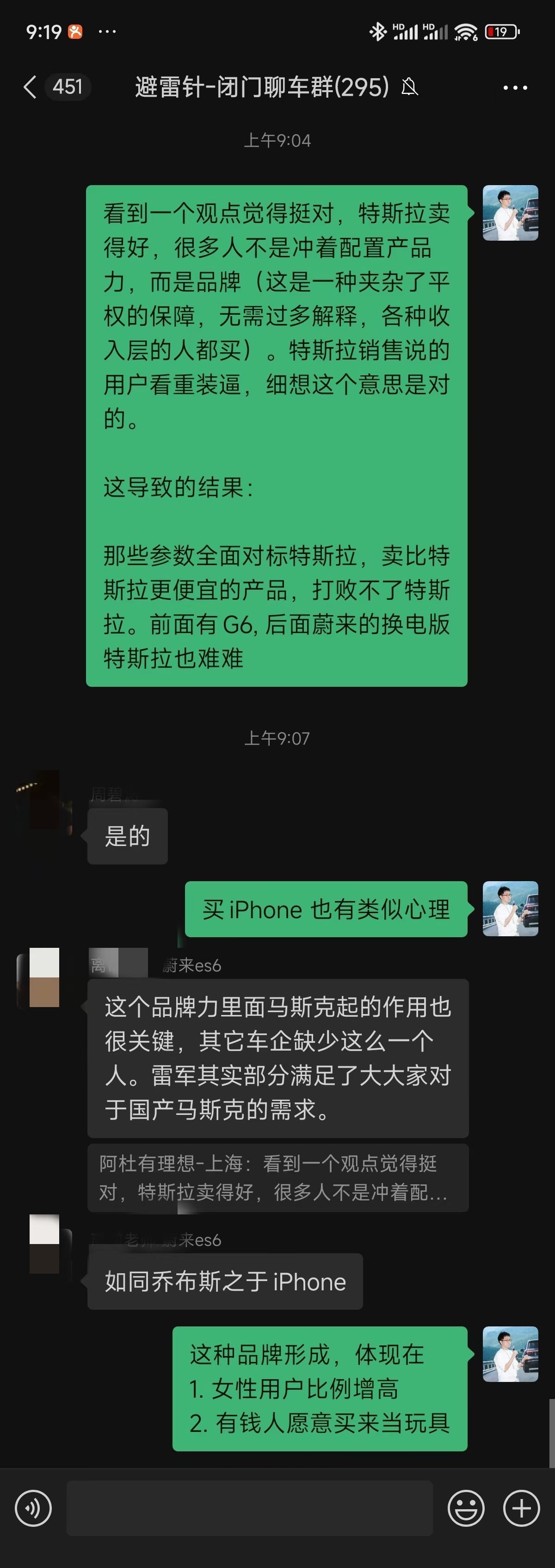 7. 最后说一点长期在理想车主群的观察。一个有趣的现象去年理想成绩好,大家多说理想没技术,主要靠营销, 车主不爽。今年小米出来后,理想车友群开始说小米没技术,主要靠营销... 并且出现理想车主蔚来化,体现在群内几个理想脑残粉反复讲“理想做工好”,“理想操控好,nvh好”, 像极了去年蔚来销量下降的时候,蔚来车主和koc吹蔚来的样子,真的非常像。真的如果你也观察到类似,说明不妙了。