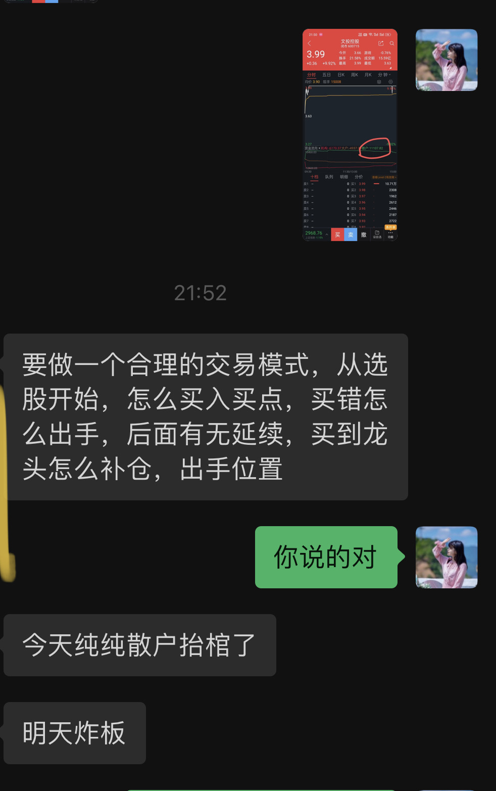 要做一个合理的交易模式,从选股开始,怎么买入买点,买错怎么出手,后面有无延续,买到龙头怎么补仓,出手位置