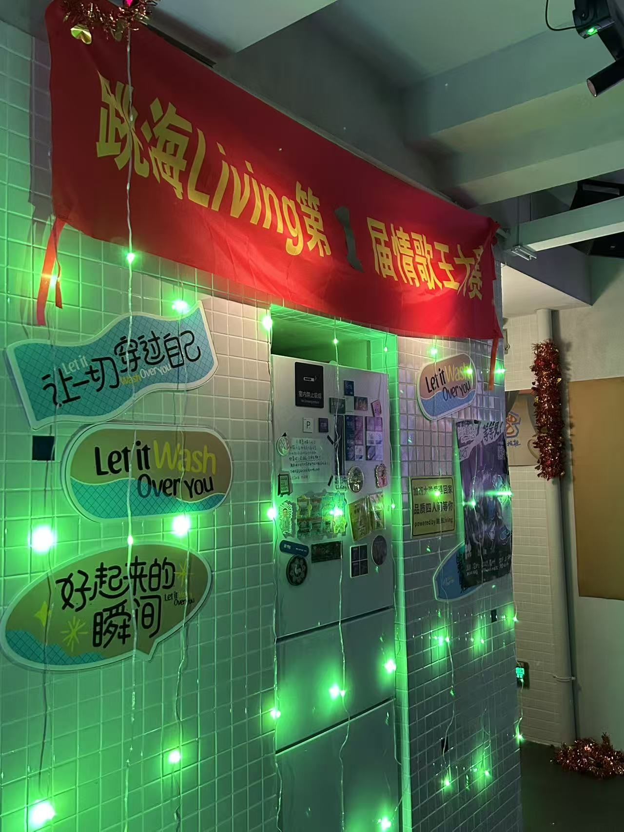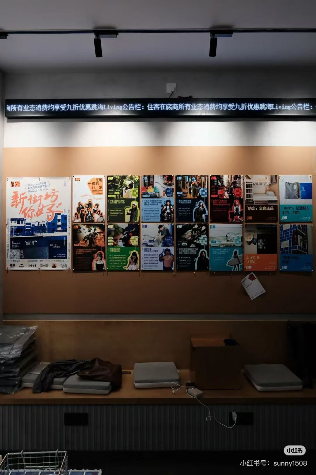 4.百家布做的窗帘、冰箱贴,电梯旁贴着记录装修时的照片墙,都在诉说跳海living的故事(历史)