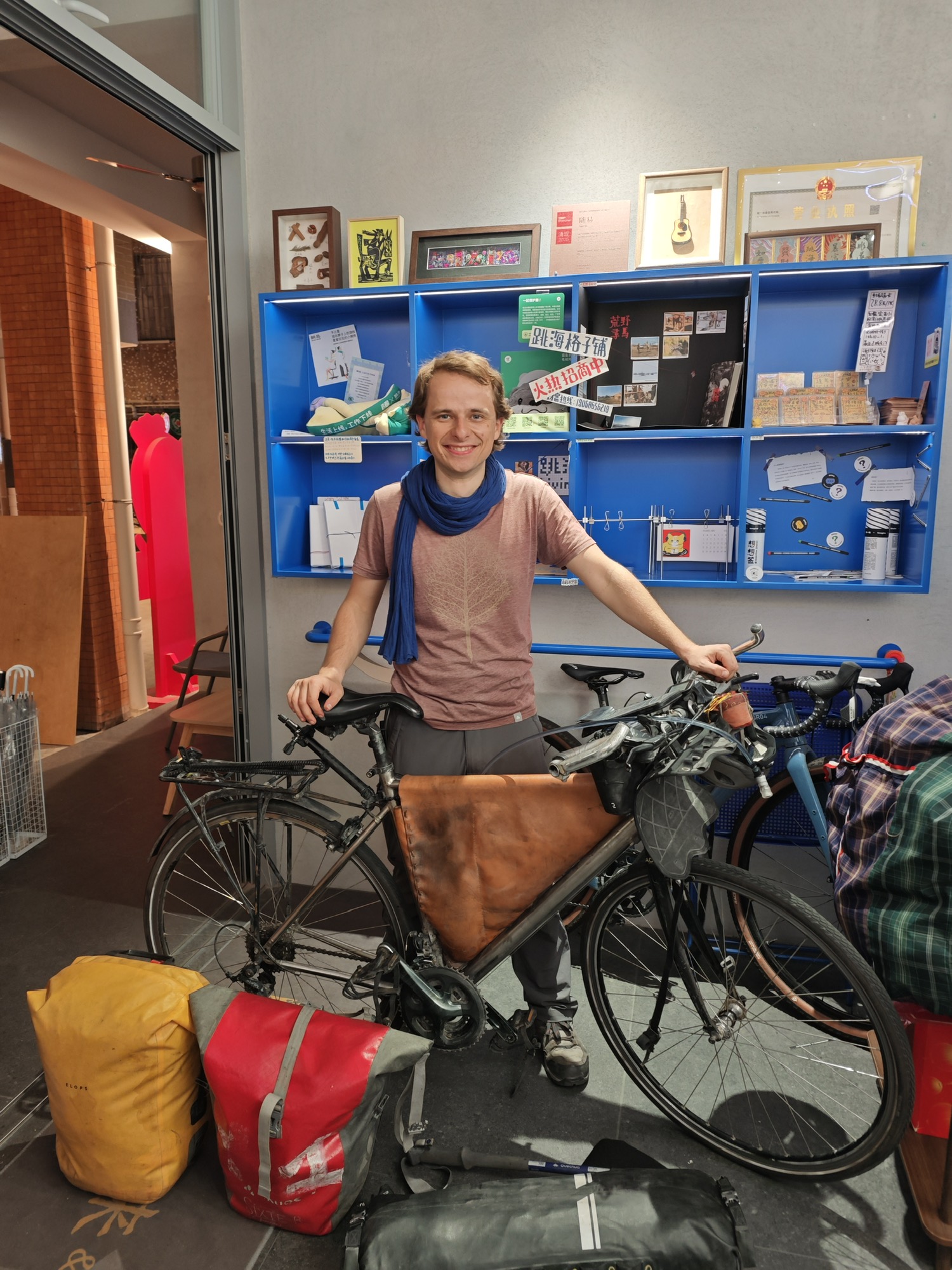 昨晚来了一个法国客人,花了四个月,骑自行车从法国到中国,太酷了!!!