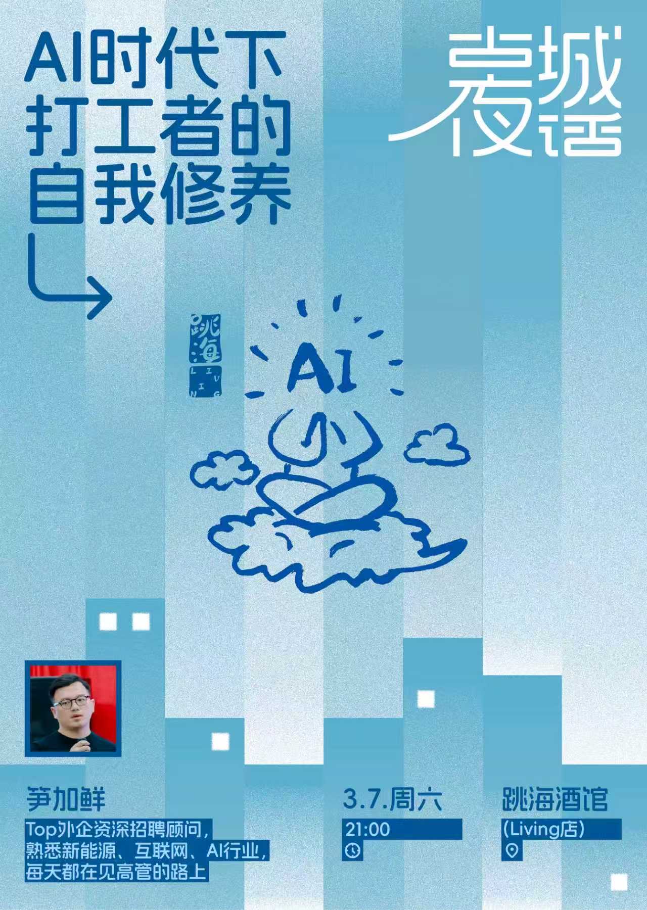 笋加鲜是跳海Living的常客,本职是AI方向的猎头,之前也在跳海Living做过分享。也经常给Living住客中正在找工作的朋友免费帮看简历。