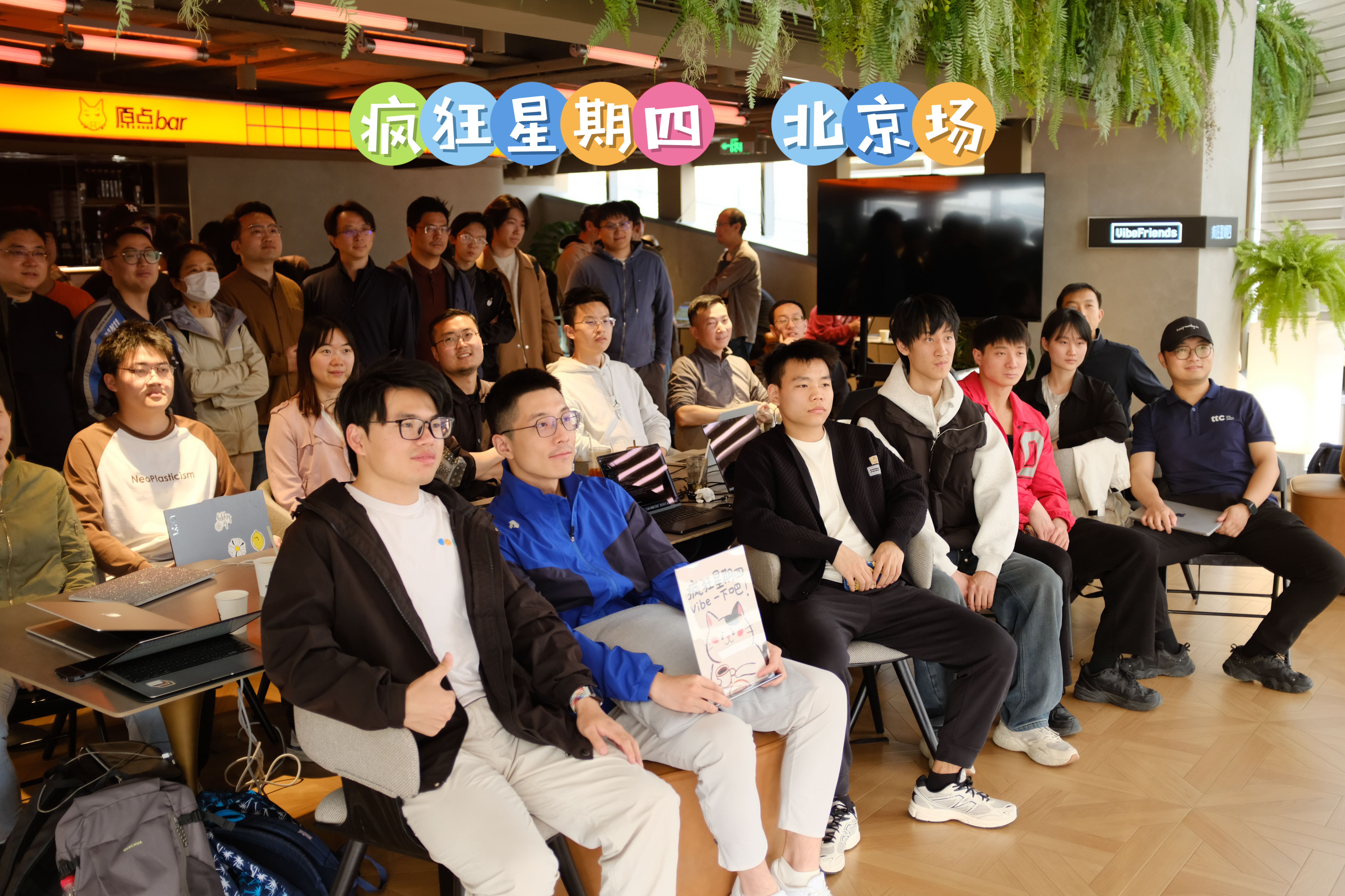 「疯狂星期四」北京场来到第 50 期 🎉,我们在五道口的原点学堂继续疯狂星期四,白天流程照旧,晚上特别一点,邀请 Vibe Friends 喝一杯,聚一聚。