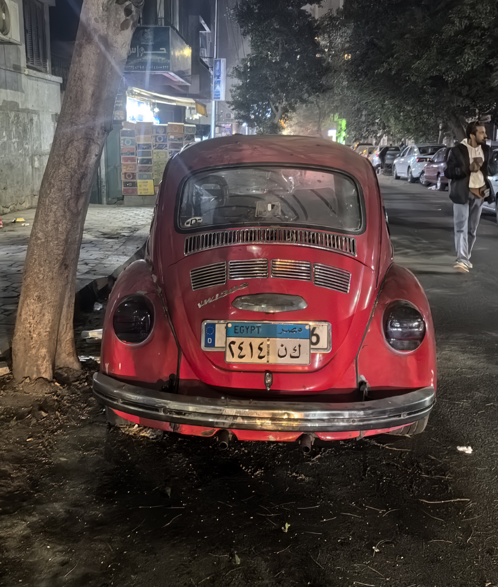 埃及街上一个特别的现象:在开罗你不时会看到这样的欧洲老车,它有两个车牌,原欧盟的车牌在底部,埃及本土的车牌覆盖在上面。